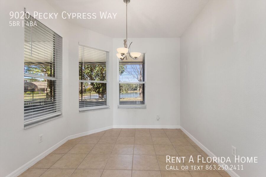 There is currently a 5 Bed 3 Bath Home for rent with 2,713 sq ft listed at 9020 Pecky Cypress Way. It is Available Now.