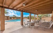This charming rental is located in the highly desirable Mission Oaks community, offering comfort, convenience, and a prime Eastside location. The thoughtfully renovated interior features luxury vinyl plank flooring throughout and a stylish designer color palette that creates a bright, welcoming atmosphere. The spacious living area is perfect for relaxing or entertaining. The eat-in kitchen includes stainless steel appliances, a pantry, ample counter space for meal prep, and a breakfast bar for casual dining. A versatile den provides the ideal space for a home office, hobby room, or extra living area. The primary bedroom features two closets and a private en-suite bathroom. Sliding glass doors lead to your private enclosed patio and yard perfect for enjoying a quiet morning coffee or hosting a weekend BBQ. Residents enjoy access to a community pool and are conveniently located near Fry's, Walgreens, Bookman's, Ace Hardware, and additional shopping and dining options at nearby Harrison Plaza. With updates, functional layout, and excellent location, this home offers the perfect blend of comfort and convenience for Tucson living. $2,400 due at lease signing (includes $1,900 refundable deposit, $250 non-refundable cleaning fee, and $250 non-refundable leasing fee). First month's rent due one business day prior to move-in. Tenants responsible for all utilities. $55 application fee per person. Credit, eviction, and criminal background screening required. One small, well-behaved pet may be considered with owner approval. $200 non-refundable pet fee plus monthly pet rent.