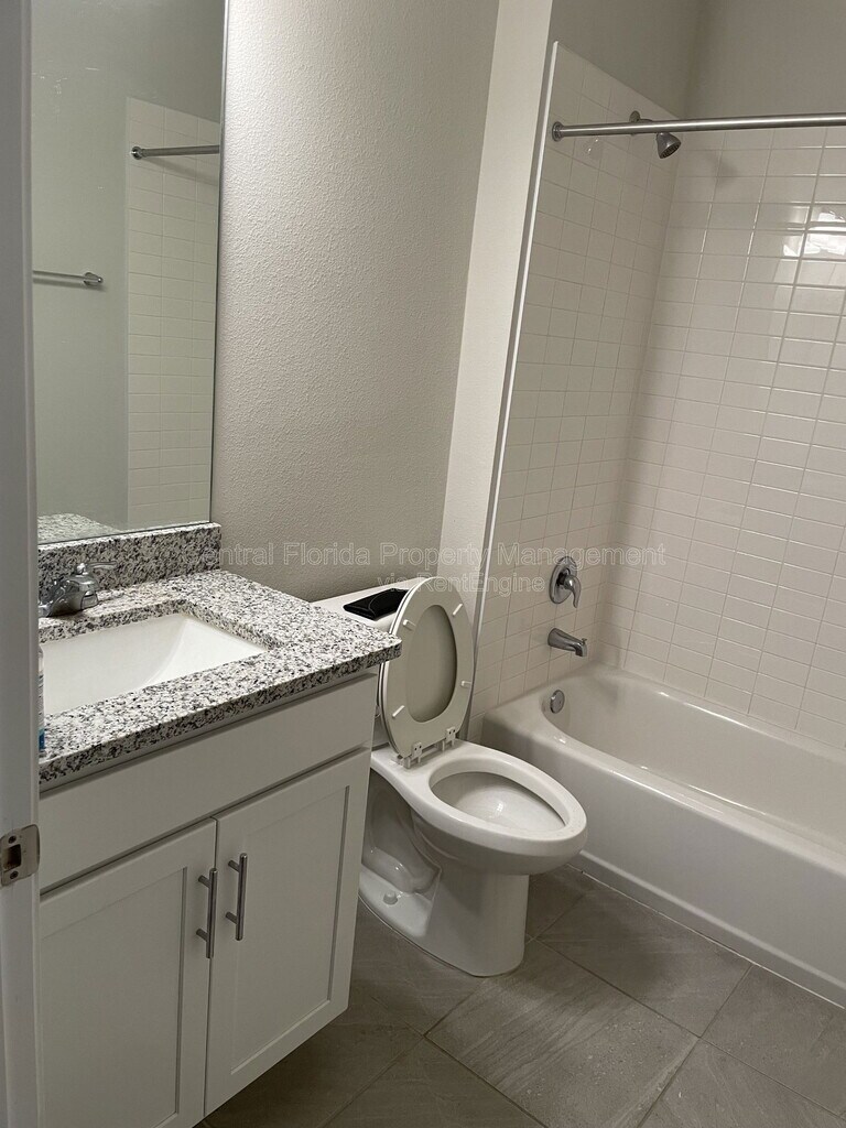 Expect to be impressed in this newer luxury townhome. This home is move in ready with a premium community street level location that includes over $14,000 in builder upgrades and looks like a model home. Every bedroom has its own full bathroom and an additional 1/2 bath is located on the main living floor. Granite countertops and custom privacy blinds throughout. The first floor has entry from the oversized 2-car garage and has overhead ceiling racks for ample storage and wi-fi enabled garage door control from your smartphone. The front door entry is via a large fenced patio that's great for relaxing on those perfect Florida nights. First floor includes a bedroom, currently being used as an office, which can easily be finished for bedroom use with its walk-in closet and full bath. Extra storage is also located under the stairs. The second floor has a perfect layout for entertaining with a beautifully upgraded kitchen with 42 inch cabinets, large walk-in pantry, breakfast bar, and all stainless steel GE appliances including a convection oven, microwave, quiet upgraded dishwasher and counter-depth GE Profile refrigerator.. The dining room, adjacent to the kitchen, flows into the main living area where you can open the sliding door to enjoy the fresh air or step out on your balcony and enjoy the view. The oversized master retreat located on the third floor is perfect for decompressing after a long day. The beautifully finished master bath includes dual sinks, large frame-less glass walk-in shower, and oversized walk-in closet. The laundry area and guest room with en suite bath round out the third floor. Additionally, the community includes a large pool, spa, playground, clubhouse and exercise facility. You'll also enjoy the convenience of being extremely close to restaurants, shops and your local Publix. A simply stunning home just waiting to be yours today! By submitting your information on this page you consent to being contacted by the Property Manager and RentEngine via SMS, phone, or email.