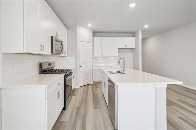 Immediate Move-In Available! This gorgeous and energy-efficient cul-de-sac home offers a spacious open layout with seamless flow from the living area to a covered back patio, perfect for both everyday living and entertaining. The kitchen is designed with white cabinets, veined white quartz countertops, and the home features beautiful tan tone EVP flooring with dark beige textured carpet for added warmth. Conveniently located with quick access to McKinney, Frisco, and Richardson via US-380, you can ditch the long commute and spend more time enjoying life. The Simpson Crossing community is designed for an active and vibrant lifestyle, offering miles of trails and greenspace, a dog park for your furry friends, a playground for the kids, and a resort-style pool for relaxation. Each home is thoughtfully built with innovative, energy-efficient features to provide comfort, better health, and real savings on utility bills, allowing you to enjoy more of what truly matters. This home is move-in ready and waiting for you.