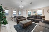 Welcome to your turnkey rental retreat in the heart of one of Kissimmee’s most sought-after gated resort communities. This immaculately furnished,two-story home offers approximately 4,128 sq ft of living space with 7 bedrooms and 6 full plus 1 half bathrooms,built in 2018. Step inside to discover an expansive open-concept floor plan featuring dual living areas (a downstairs lounge and an upstairs loft),a chef-style kitchen with an oversized island,quartz countertops,42-inch cabinets,and stainless steel appliances. The main floor hosts the primary bedroom suite paired with direct access to the covered lanai and private heated pool and spa—a perfect blend of comfort and resort-style living. Outside,slide open the triple glass doors to your private outdoor oasis: heated in-ground pool,spa,covered patio,and lanai overlooking the lush setting—ideal for relaxing after a day at nearby attractions. As part of a full-amenity resort community,residents enjoy clubhouse access,water-park features,poolside cabanas,fitness centre,sand volleyball,soccer field,24-hour gated security,and more. Located just minutes from Walt Disney World Resort and surrounded by top-rated dining,shopping,and recreation,this home offers both an upscale vacation lifestyle and strong rental potential. MLS# O6357662