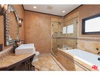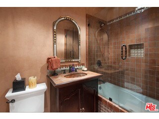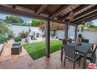 Charming designer-done Spanish featuring 3 bedrooms and 2 bathrooms in prime West Hollywood West location. A spacious living room welcomes you with wood-beamed ceilings, a custom fireplace, Moroccan light fixtures and rich dark hardwood floors that add warmth and character throughout. The gourmet open kitchen is outfitted with stainless steel appliances and generous counter space, ideal for both everyday living and entertaining. Both bathrooms showcase Moroccan tile work and custom cabinetry, blending style with functionality. French doors throughout the home create seamless indoor-outdoor flow and invite in natural light, giving the space a calm, almost zen-like energy. The private backyard is perfect for gatherings, complete with an outdoor fireplace and built-in seating surrounded by mature greenery and beautiful trees for added privacy. Additional features include a gated driveway, 2-car garage and in-home laundry. Located just moments from some of the best shops and restaurants in Los Angeles and West Hollywood. A special opportunity not to be missed. MLS# 26647179