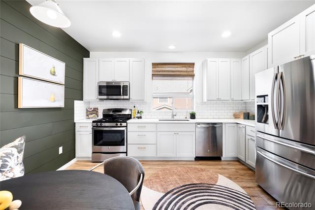 Thoughtfully updated and impeccably maintained, this sophisticated residence blends modern finishes with effortless comfort. Fresh interior and a curated breakfast nook with custom built-ins and designer lighting set a warm, elevated tone, while the kitchen features stainless steel appliances and a gas range for everyday ease. Two private patios extend the living space outdoors, complemented by an oversized attached garage for added convenience. Just moments from The Shops at Northfield and surrounded by resort-style pools, parks, and scenic trails, this location offers a seamless balance of refined neighborhood living and urban accessibility, with quick connections to downtown, I-70, and DIA. The perfect blend of style, comfort, and convenience. 1 Car Oversized Garage and in-unit Laundry! Townhouse MLS# 3480240