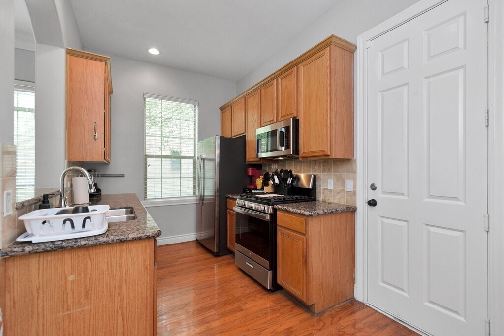 This 3-story patio home has 4 bedrooms and 3.5 baths; Wood floors throughout Entry,living,dining,and kitchen; Breakfast bar; Granite counters for kitchen and bathrooms; High ceilings for all bedrooms; All closets are walk-in; Primary bedroom features His and Her closets and one of them with built-in cloth shelves; The 3rd floor private suite could be a guest bedroom or Game room or a Media room; Located in gated community with 24-hour security guard; Easy access to 610,walking distance to Bus Stop,and minutes to TMC; Community amenities including a swimming pool,fitness center,lake,and jogging trail. HOA fee covers water bill and front yard maintenance MLS# 27552094
