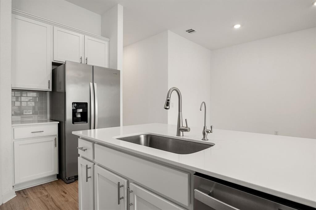 Modern single-story home on a peaceful cul-de-sac in the desirable Riverview community, offering easy access to Georgetown’s best amenities. Residents enjoy scenic San Gabriel River trails, a community pool, playground, beach volleyball court, and beautifully maintained green spaces. Just minutes from historic Downtown Georgetown, Wolf Ranch Town Center, and a variety of dining, shopping, and entertainment options. Within 15 minutes, HEB, Costco, IKEA, and Round Rock Premium Outlets are easily reachable. Convenient access to IH-35, SH-130, and Hwy 29 allows quick commutes to Round Rock, Cedar Park, and North Austin. This stunning home offers an open-concept layout with 4 spacious bedrooms and 2 full bathrooms, abundant natural light from large windows and sliding glass doors, 10 feet ceilings in Living, Kitchen, Dinning, Hallway (tray ceiling in primary bedroom is 11 feet, other bedrooms are 9 feet), and luxury vinyl plank flooring throughout the main living areas. All doors are 8 feet high! The entry opens into a bright great room seamlessly connecting the living room, dining area, and chef’s kitchen. The kitchen features an extra-large center island with breakfast bar, quartz countertops, walk-in pantry, water softener, reverse osmosis faucet, and premium stainless-steel appliances. Oversized sliding doors provide a seamless transition from indoor to outdoor living. The private primary suite is separated from secondary bedrooms and includes luxury vinyl plank flooring, tray ceiling, spacious walk-in closet, and a spa-like en-suite with quartz double vanity and large walk-in shower. Secondary bedrooms are generously sized with carpet flooring and share a full guest bath with quartz vanity and tub/shower combination. Step outside to a large fenced backyard with a covered patio—perfect for relaxing, grilling, or entertaining. Exterior features four-side brick construction for durability and curb appeal. MLS ID 2179072