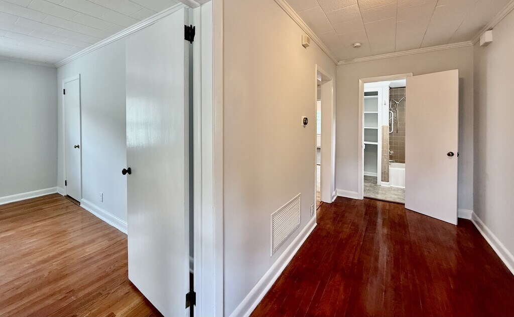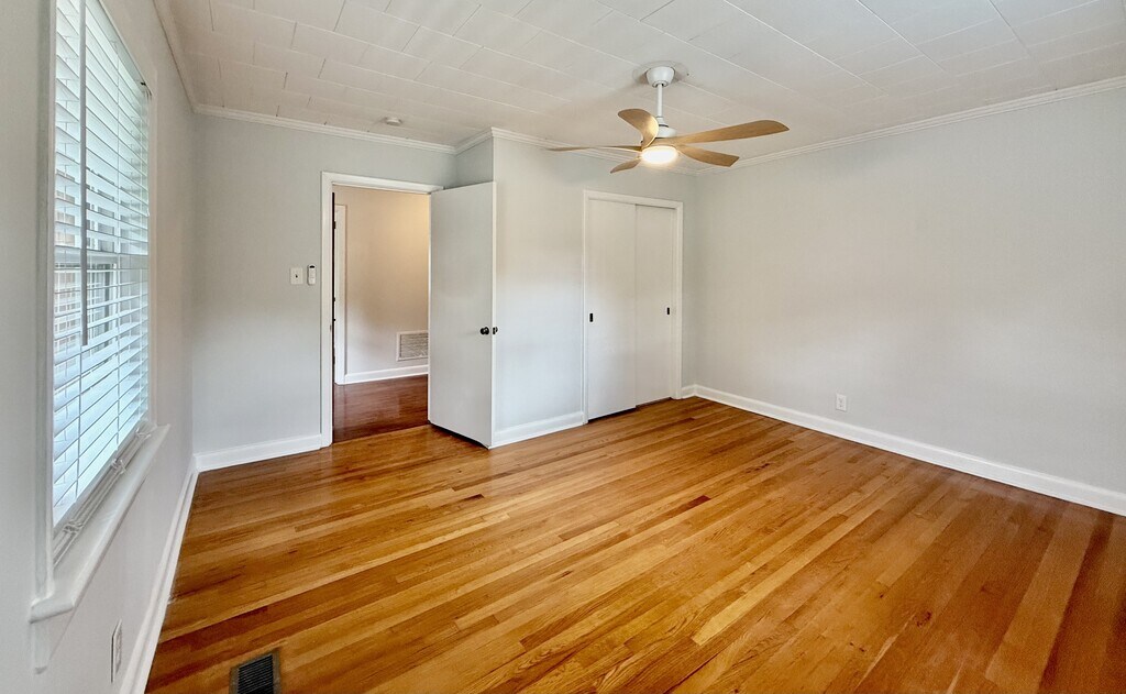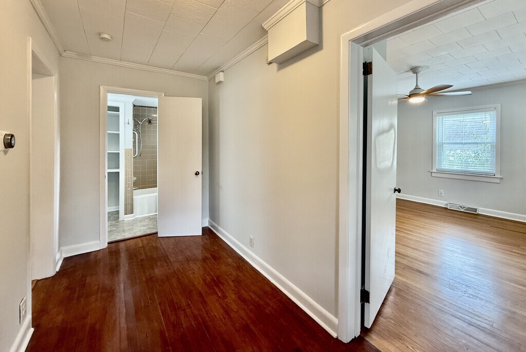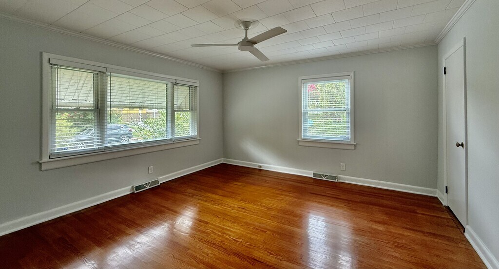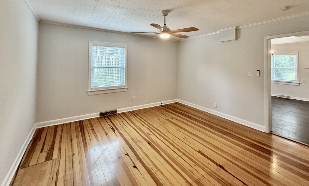 AVAILABLE NOW! Adorable mill house in the heart of Old West Durham! Walking distance to 9th St./Broad St. restaurants and shops, and a quick stroll to Duke's east campus and the satellite parking lot for Duke and VA hospitals. Home features heart pine and oak flooring no carpet), spacious rooms with large closets, and high ceilings with lots of natural light. There are 2 bedrooms at the front of the house and a central hallway leading to the bathroom. The living room is in the middle (could be a 3rd bedroom) and a very large dining room at the back, adjacent to the kitchen, can also be a home office. Small fenced yard on the side. Tenant pays lawn care and utilities. No smoking on the premises. Pets negotiable with weight and breed restrictions for dogs. Adorable mill house in Old West Durham