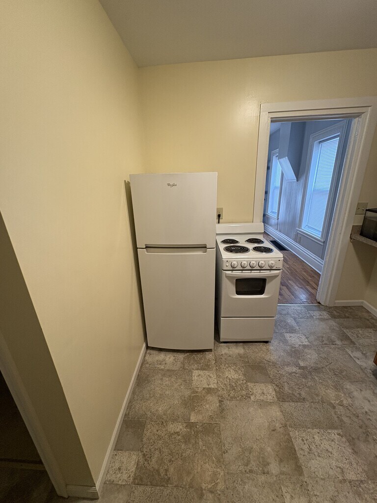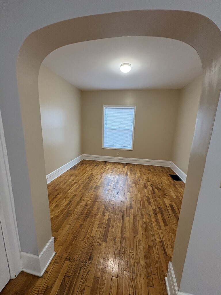 This charming home offers exceptional value with a flat $150 utility charge that covers all utilities—gas, electric, water, sewer, and trash—as well as parking, lawn care, and snow maintenance. Featuring beautiful hardwood floors throughout, this home offers a warm and inviting atmosphere complemented by fresh paint and stylish molding that highlights the updated interior. The kitchen provides plenty of space for cooking and entertaining, and the bathroom includes a modern vanity for a clean, updated look. Additional updates such as new siding enhance the home's curb appeal. Off-street parking is conveniently located at the back of the property. Don't miss out—homes with all utilities included are rare! This home is pet friendly!