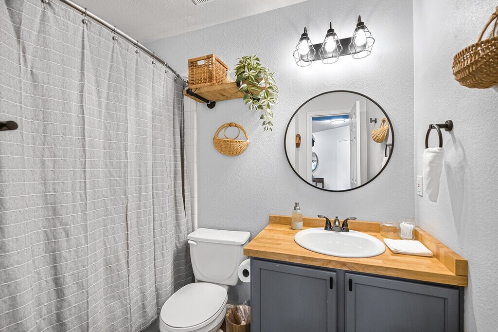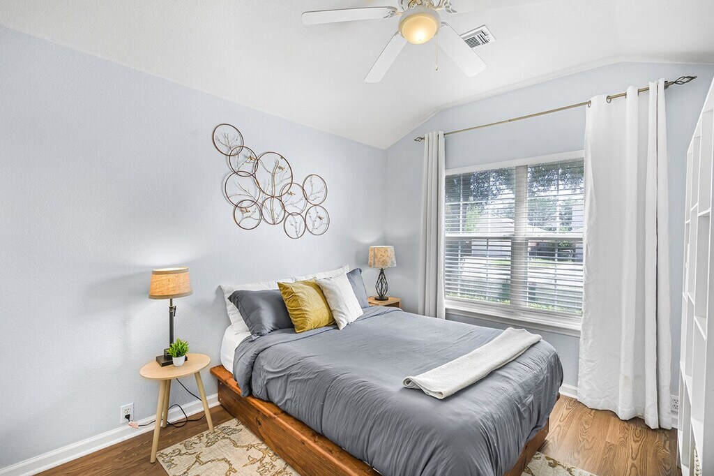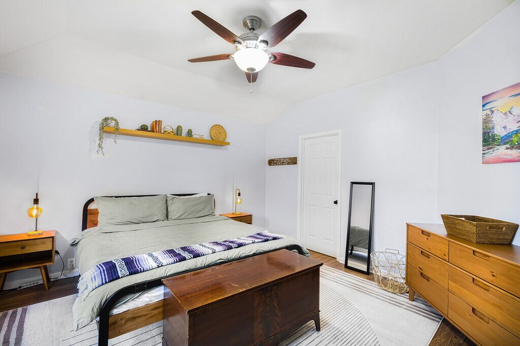 Feel at home in this beautiful 4-bedroom home, a family-friendly oasis. This home features a fully equipped kitchen, comfortable bedrooms, a cold plunge, a crib and high chair, board games and toys, a washer and dryer, and high-speed Wi-Fi. Enjoy the spacious patio and backyard, where the sparkling pool invites the whole family to take a dip or lounge on the shaded porch. Free parking is available on the premises. This home is pet-friendly. [SI]