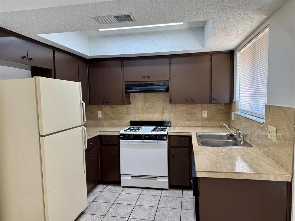 Welcome to this well-maintained 2-bedroom, 2-bathroom duplex! Convenient to Garrison Park, HEB, shopping, and bus line. Tile flooring throughout, vaulted ceilings, ceiling fans, fresh paint inside and outside. Spacious bedrooms and updated bathrooms. The living room has vaulted ceilings and recessed lighting. The kitchen includes a gas range, refrigerator, and a built-in china hutch. The primary bedroom has a private bath. The hallway to the second bedroom you will find a deep linen closet and a second full bath. Good size storage in the carport! Nice BBQ area on the patio or on the private deck in the back yard. No smoking allowed and pets are negotiable. Available now!