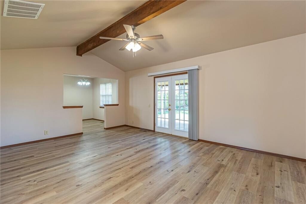 Beautiful,remodeled,single family home in Yukon School District close to Independence Intermediate School and the new Yukon High School,centrally located close to both I-40,Kilpatrick Turnpike,and all conveniences. All electric utilities,two car garage with garage door openers,large backyard with covered patio,ceramic tile in bathrooms and utility room. NEW privacy fence. NEW carpet in bedrooms. NEW wood look plank flooring in kitchen,dining,living room,and entry. Large mud bench in entryway. Cathedral ceiling in living room with garden doors to back yard. Blinds on all windows. Lots of storage in this home including a walk-in closet in both the master bedroom and 2nd bedroom. 3rd bedroom has two closets. NEW stainless steel appliances in kitchen. Ceiling fans in all bedrooms. INCLUDES LAWN SERVICE. One year lease required. No smoking and vaping property. No Pets. Security Deposit$1695