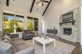 Welcome home to spacious living spanning over 3,000 square feet, designed for both comfort and functionality. This beautifully maintained property is designed for comfortable living and offers a warm, inviting atmosphere from the moment you arrive. The striking brick and stone façade, complemented by mature, manicured landscaping and a lovely stone-edged planting bed, creates a picture-perfect curb appeal. This exceptional property boasts an inviting, large living room featuring soaring high ceilings with elegant exposed beams and a cozy fireplace, perfect for gatherings. The heart of the home is a large chef's kitchen, equipped with a gas stove and two distinct dining areas, ideal for entertaining. For convenience, a dedicated office space provides the perfect environment for remote work. The luxury continues in the primary bathroom, offering a spa-like retreat. Upstairs, a versatile game room and a separate media room provide ample space for recreation and relaxation. Located in a great area within a highly desirable school district, this home simplifies moving with the inclusion of a refrigerator, washer, and dryer. Don't wait, schedule your tour today.