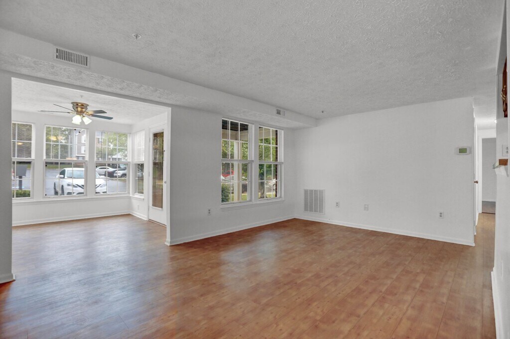 ZERO steps in to this spacious and well kept 2 bedroom 2 full bath condo. Ground floor unit with sidewalk to patio which enter directly in to the spacious dining area. Wood floors through entire home except ceramic tile in kitchen and baths. Huge open area living room with pass through to kitchen. Kitchen has cherry cabinets, tile backsplash and stainless appliances. Full sized washer and dryer right off kitchen. Primary bedroom has large walk-in closet plus nice sized full bath with standing shower. Hall bath has a tub. This one is ready to go!