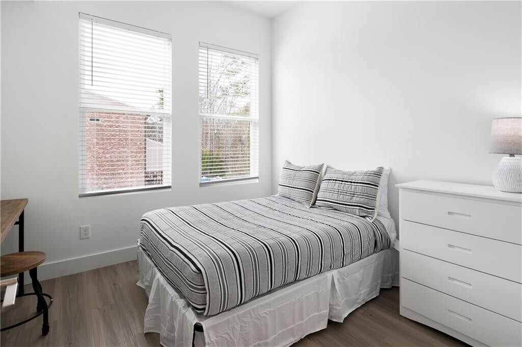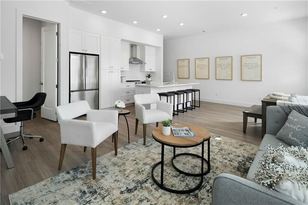 SHORT WALKING DISTANCE TO THE HEART OF DOWNTOWN WOODSTOCK! THIS END UNIT TOWNHOME IS 2 YEARS NEW AND VERY WELL APPOINTED! With its modern amenities and convenient location,it seems like an ideal place to live. The absence of carpet and the presence of hard surface flooring throughout is a practical and stylish choice. The kitchen upgrades,including the quartz countertops,tile backsplash,and rollout shelves,make it both functional and aesthetically pleasing. The high ceilings on both floors and the large doors with lever hardware add to the sense of spaciousness and luxury. The upstairs bathroom is particularly impressive with its all-tile shower,frameless shower door,and large vanity. Living just a couple of blocks from downtown Woodstock offers easy access to all the city has to offer,from its vibrant arts scene to its diverse dining options and shopping opportunities. Being able to walk to these amenities makes it even more appealing. Overall,it is a wonderful place to call home! MLS ID 7747322