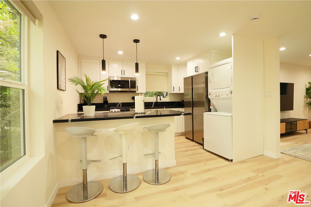 Experience contemporary living in this newly remodeled 3-bedroom, 3-bath residence located just steps from the world-famous Sunset Strip. Fully furnished option. This beautifully designed home features an open-concept layout with high-end finishes, stylish modern decor, and abundant natural light. Each spacious bedroom includes its own en-suite bath, while the living area offers a seamless flow for entertaining and comfort. Enjoy the convenience of in-unit laundry, dedicated home office space, and flexible lease terms for both short- and long-term stays. Street parking available. A perfect blend of luxury, location, and lifestyle in the heart of West Hollywood! MLS# 25614979