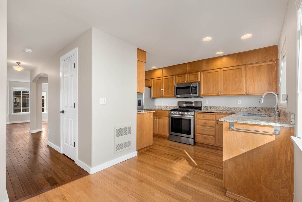 Welcome to this spacious 3-bedroom, 3.5-bathroom townhome in the highly sought-after Crown Hill neighborhood of Crown Hill. Ideally located for convenience and lifestyle, this move-in ready home offers easy access to parks, schools, bus lines, and everyday essentials—making commuting and errands effortless. Freshly painted throughout, the home features a bright and open layout with beautiful hardwood floors and no carpet. Large bay windows fill the living spaces with natural light, creating a warm and inviting atmosphere. The well-appointed kitchen includes stainless steel appliances and a charming breakfast nook that can easily double as a home office or cozy dining space. Each of the three generously sized bedrooms offers its own private bathroom, providing exceptional comfort and privacy. The two upstairs bedrooms feature ensuite bathrooms and expansive wall-to-wall closets. From the upper level, enjoy a peek-a-boo view of the Olympic Mountain range on clear days. Laundry is conveniently located in-unit for added ease. The first floor includes a welcoming entryway, one bedroom and full bath—ideal for guests or a private office—along with a single-car attached garage offering additional storage space. Street parking is also available. The second floor hosts the main living area, dining space, kitchen, breakfast nook, and a powder room. The third floor features the primary suite with ensuite bath and an additional bedroom, also with its own ensuite. Outside, a fully fenced, low-maintenance front yard provides a pleasant outdoor space without the upkeep. This prime location places you just minutes from grocery stores including Metropolitan Market, Safeway, QFC, and Grocery Outlet. Enjoy nearby conveniences such as Chevron, Chase Bank, Swansons Nursery, and Ace Hardware, as well as local coffee shops and bus stops within walking distance. Outdoor enthusiasts will appreciate being just minutes from Golden Gardens Park, while dining and shopping options await at the vibrant Ballard Farmers Market and surrounding Ballard restaurants. Commuting is simple with Northgate Station light rail just a short drive away. This beautifully maintained townhome offers the perfect blend of space, privacy, and location—an exceptional opportunity to enjoy comfortable living in one of Seattle’s most desirable neighborhoods. 12-month lease available; 15/16 month lease preferred Required Resident Benefit Program for an additional $36.50 per month. Required Renters Insurance Program (opt-out available). We’ve secured the industry-leading value policy from an A-rated carrier. You’ll benefit by being added to our master policy so all of your insurance requirements in the lease are met for an additional $11.95 per month. If you want a retail individual policy, you can still get that at any time with submission of an approved policy meeting lease requirements and that monthly cost will be reduced. Resident Benefit and Renters Insurance Program details can be found at our Residential Benefits Program page at