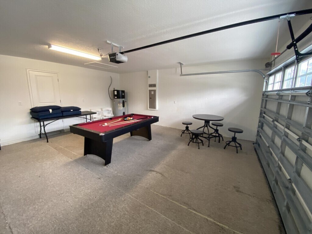 Welcome to Champions Retreat, a luxurious 6-bedroom villa nestled in the renowned Champions Gate Golf Course Community. Perfect for families and groups of up to 15, this elegant 3,063 sq. ft. home features a private pool, spillover spa, themed bedrooms, a game room, and a fully equipped kitchen. Located just 20 minutes from Walt Disney World, it offers a world-class resort experience with nearby attractions, making it ideal for your next Florida getaway. Enjoy quality time in the open-plan living room featuring plush sofas, a flat-screen TV, and an 8-seat dining table. The adjacent 4-seat breakfast bar is perfect for casual meals. The modern kitchen is fully equipped with granite countertops, stainless steel appliances, and all the tools you need for home cooking. The villa boasts 5 modern bathrooms, some with dual sinks and walk-in showers, and a loft area with a large TV for family movie nights. The game room offers a dedicated space with a pool table and seating for hours of family fun. Step outside to your screened-in pool and spillover spa, surrounded by reclining chairs and outdoor seating. A washer and dryer are available for your convenience. Optional pool heating is available for an additional fee of $35 per night with a minimum of 3 days. Request at least 7 days prior to arrival. Situated just 20 minutes from Disney and close to Universal Studios, SeaWorld, and other top attractions, this villa is a gateway to fun. The nearby community features dining, shopping, and entertainment, ensuring an unforgettable stay. House rules include no parties, pets, or outside visitors, with violations resulting in penalties. Check-in is at 4:00 PM and check-out is at 10:00 AM, with flexible options potentially incurring additional fees. Ensure all trash is bagged before placing it in the outdoor bin. [SI]
