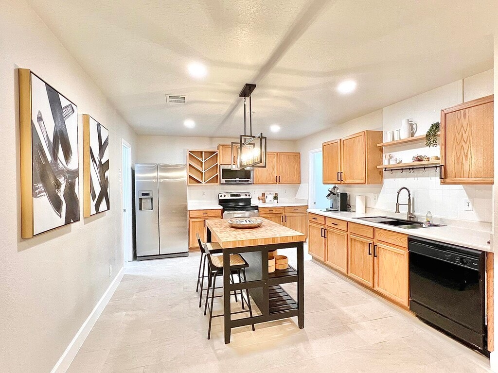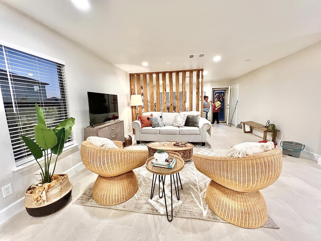 Welcome to your dream rental! This beautiful single-family home located at 9047 Twincreek Farm, Converse, TX 78109, offers a perfect blend of comfort and style. With 1,735 square feet of living space, this spacious 4-bedroom, 2-bathroom unit is perfect for families looking for a tranquil yet modern living environment. Step inside and be greeted by an inviting open layout that includes a cozy living area featuring comfortable wicker chairs, accented by vibrant cushions, perfect for relaxation. The living room seamlessly transitions into a modern dining area, equipped with a large wooden table ideal for family meals and gatherings. Decorative plants and stylish lighting fixtures enhance the warm atmosphere throughout the home. The kitchen boasts stainless steel appliances and a convenient microwave, along with ample counter space for all your cooking adventures. Enjoy the convenience of an in-unit washer and dryer, central air conditioning, and heating to keep you comfortable year-round. This unit is pet-friendly! Bring your furry friends along for the adventure with just a one-time pet fee. Other amenities include high-speed internet, Basic utilities such as water, electricity, trash, and internet/cable are available, ensuring all your needs are covered. Located in a tranquil neighborhood, you’re just minutes away from local parks, shopping centers, and schools—all the essentials for a thriving lifestyle. Plus, the home’s month-to-month lease option allows for flexibility as your needs change. Experience the beauty of living in a modern home blended with comfort, convenience, and style. Schedule your personal tour today!