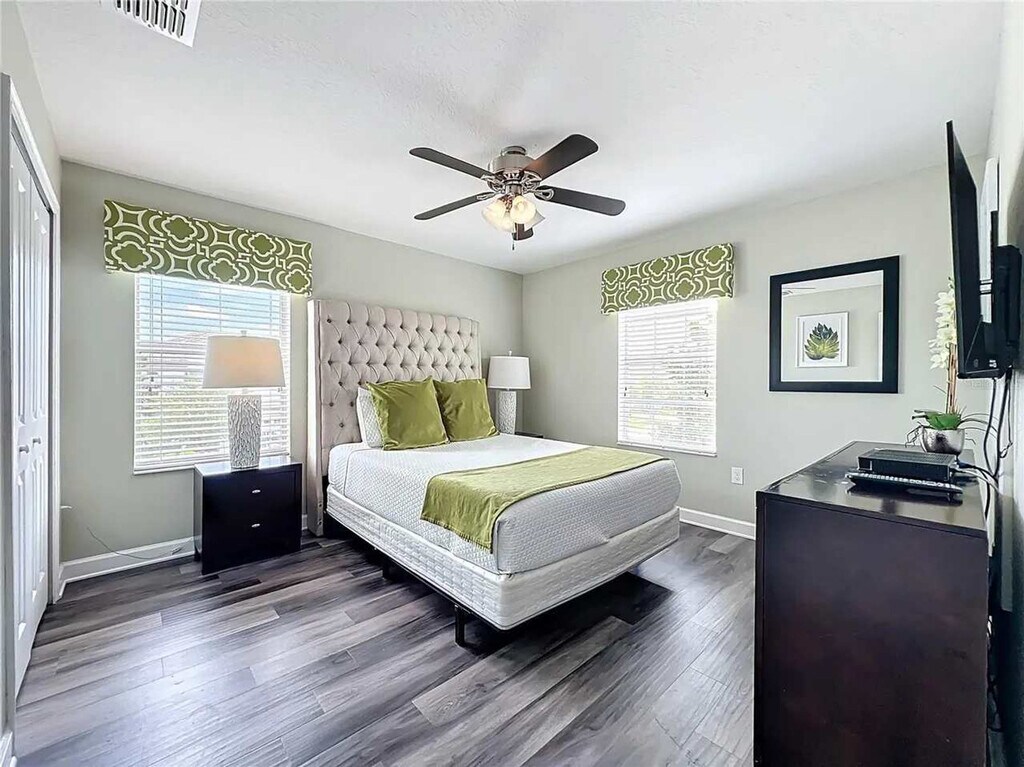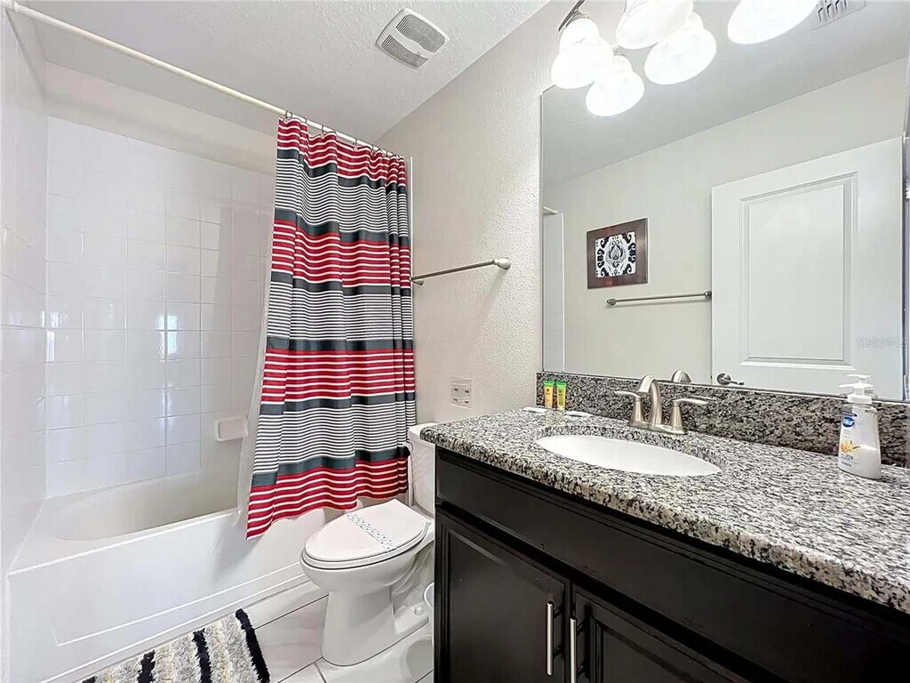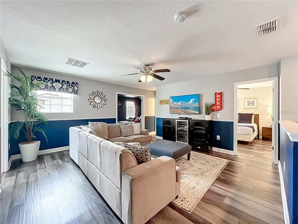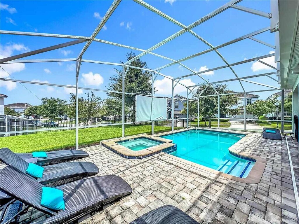 Leave everyday life behind and feel at home in this welcoming paradise designed for relaxation and family fun! This home features 8 spacious bedrooms and 5 bathrooms. This home offers 2 large living areas, a cinema room, a large full kitchen with stainless steel appliances, and spacious indoor and outdoor dining areas. Enjoy the free washer and dryer, private pool with the option to add heat, outdoor pool loungers, and access to the community water park and amenity center/clubhouse. If you would like to add pool and spa heating to your reservation, please let us know in advance, and we can coordinate to set that up for you. The cost for this amenity is $35 per day of stay, which will be invoiced separately. Situated in ChampionsGate, FL, this gated master-planned community offers a perfect blend of luxury and recreation. This home is conveniently located just 20 minutes from Disney World, 28 minutes from Universal Studios, and 25 minutes from SeaWorld. Nearby Posner Park provides a variety of shopping and dining options, and easy access to I-4 and 27 makes getting around effortless. There is absolutely no smoking and no drugs allowed inside the home or elsewhere on the property. Only the number of guests indicated on the reservation are allowed to stay overnight on-premise, unless otherwise agreed upon in written form. The number of vehicles on the property should never exceed 4 per reservation. Please respect the neighborhood and neighbors by being considerate while socializing outdoors after 10 pm and before 8 am, and keep excessive noise to a minimum during this time. We reserve the right to terminate a reservation without refund, and/or pursue monetary fines if guests are found to be in violation of any of these rules. Check-out time is 10 am, and in the event you stay beyond the original scheduled check-out time, you may incur a fee of up to $300. [SI]
