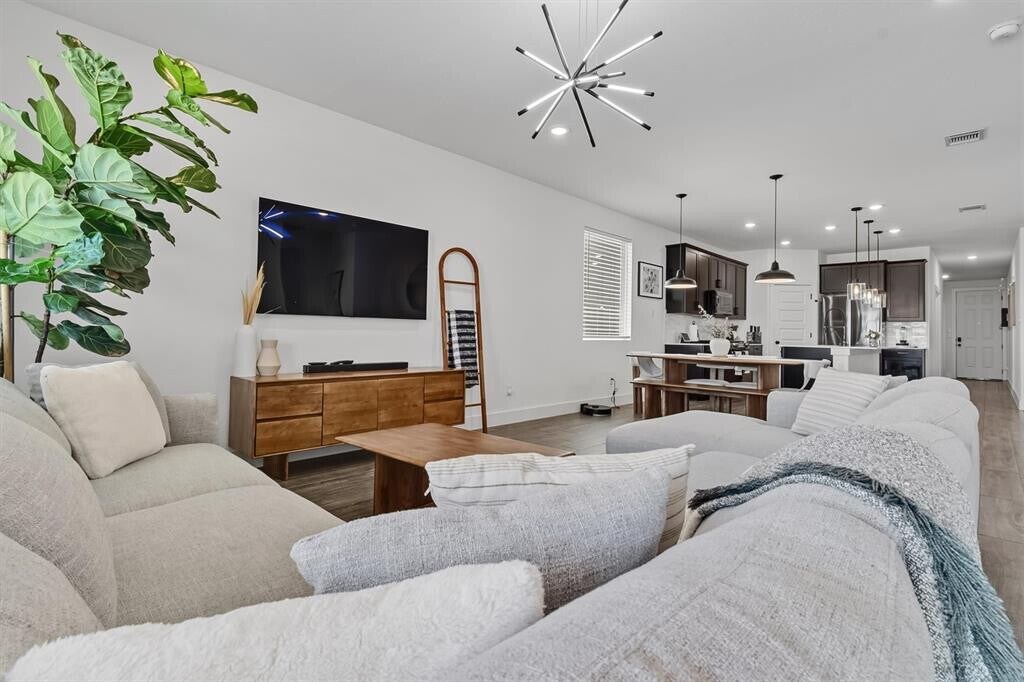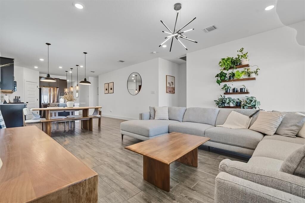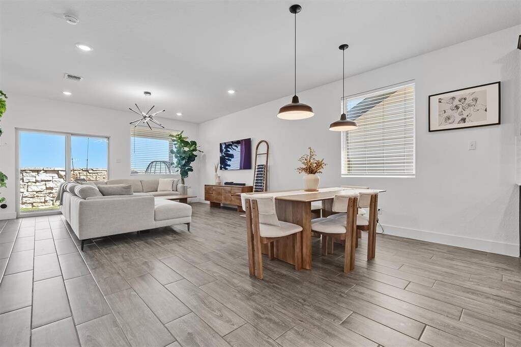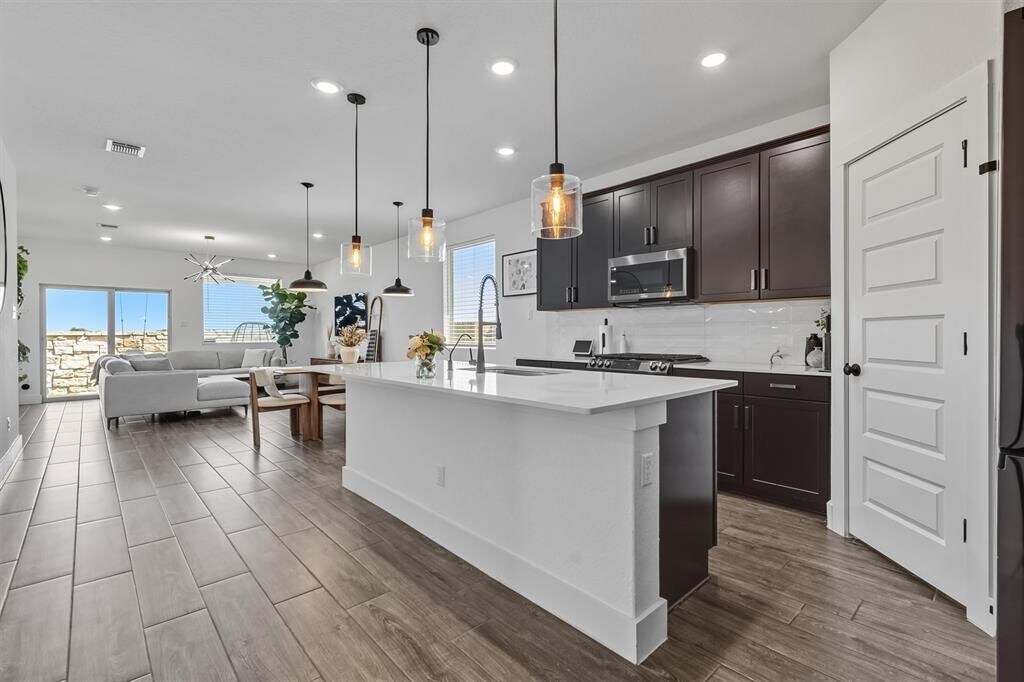 Welcome to this spacious and stylish 4-bedroom, 3 full-bath home nestled in the sought-after Cottonwood Farms community. With standout curb appeal and a thoughtfully designed, open-concept floor plan that creates a seamless flow for daily living and entertaining. As you step inside, you'll be greeted by an abundance of natural light and beautiful wood-look tile flooring that extends throughout the main living areas. The heart of the home is the stunning kitchen featuring upgraded cabinetry, Samsung stainless steel appliances, modern finishes, and a large walk-in pantry. It overlooks a spacious dining area and a family room with vaulted ceilings and over-sized windows, creating a bright and airy atmosphere. The luxurious master suite is a true retreat. This generously sized space includes an en-suite bathroom with upgraded finishes, a relaxing garden tub, a separate shower, dual sinks, and a massive walk-in closet. Three additional bedrooms offer plenty of space for family and guests. A dedicated home office and a spacious laundry room with plenty of storage add to the home’s functionality. The home also features include a smart thermostat and doorbell, and an upgraded quiet garage door opener for the attached two-car garage. Outside, enjoy a covered patio and a fully fenced backyard, perfect for relaxing or playing. Residents of Cottonwood Farms will soon have access to a new community pool and amenity center. Located in the heart of Hutto, you're just minutes from schools, dining, shopping, trails, and parks. With quick access to TX-130, TX-79, and TX-45 Tolls, commuting is effortless. Combining high-end upgrades, modern amenities, and a prime location, this is the perfect place to call home.