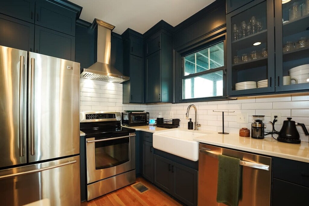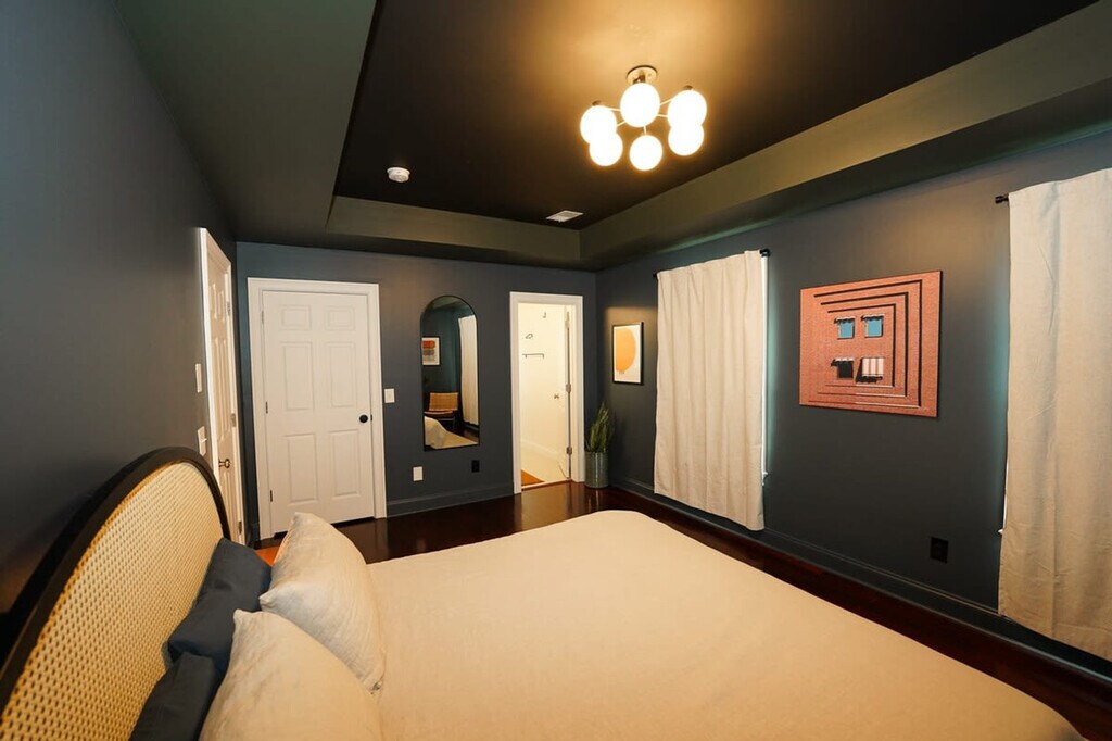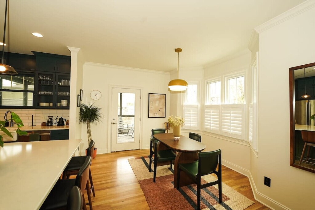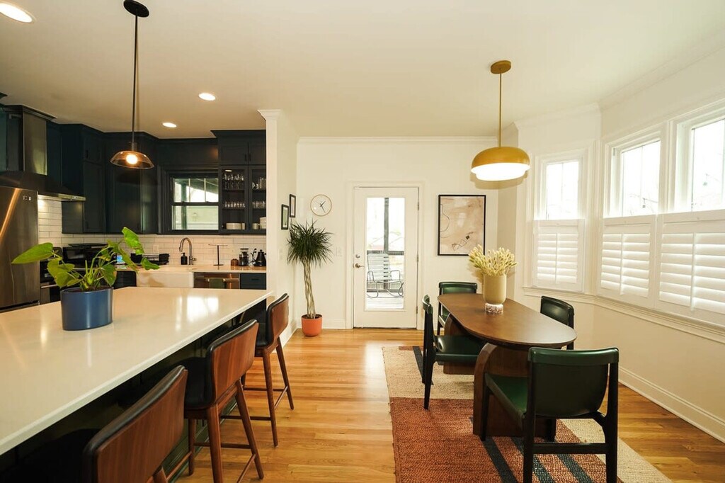 Enjoy a stylish experience at this centrally located, private 3-bedroom home. Explore downtown Nashville just north of Broadway in Nashville's most desirable residential neighborhood of Germantown, boasting a perfect 10/10 walkability score. The home features king, queen, and double beds, a Peloton, a TV in the living room, a kitchen, indoor dining areas, smart toilets, a screened-in porch, and a fully fenced-in yard complete with furniture for outdoor dining under string lights on starry nights—perfect for gathering with friends and family. The home comfortably accommodates 6-8 people. Bedroom 1 features a king-size bed and an attached private full bathroom with a double vanity and a combo tub and shower, located on the second floor. Bedroom 2 offers a queen-size bed and shares a full bathroom with bedroom 3, which includes a vanity and a combo tub and shower, also on the second floor. Bedroom 3 has a double bed and shares the bathroom with bedroom 2. The common area on the first floor includes a pullout sleeper sofa bed, which can also be used as a regular sofa, accommodating 1-2 guests. Germantown exudes period charm with chic restaurants in restored Victorian buildings and cafes along brick sidewalks. Former warehouses house elegant boutiques selling high-end shoes and clothing, while the Nashville Farmers' Market offers eclectic global eateries and vendors with seasonal produce. Nearby, the Bicentennial Capitol Mall State Park features skyline views and monuments to Tennessee history. You can walk, scoot, drive, or bike around the area, and you're a mile or less from Broadway. Uber and Lyft are convenient options if you don't have a car or want to avoid parking. No unauthorized guests, pets, parties, or events are allowed. No weapons or criminal behavior are tolerated. Avoid using glitter, silly string, confetti, tape, or anything that could damage walls due to party-related decor. Fireworks are prohibited. Unauthorized parties will result in immediate eviction and a minimum fine of $1,000. Staying past checkout time without authorization incurs late fees of $20 for every 15 minutes. Registration Number: [SI]
