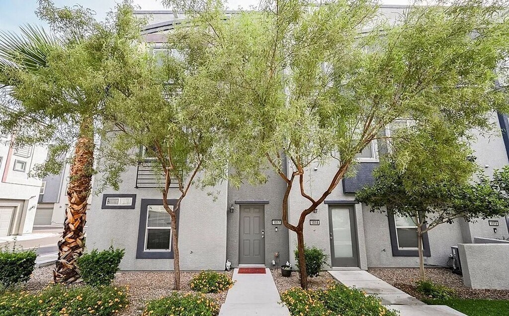 Enjoy stunning Strip and city views from your private rooftop deck in this exceptional three-story condo located in a newer gated community. Residents benefit from resort-style amenities including a clubhouse, pool & spa, lush grassy areas, and BBQ stations. Conveniently situated near major freeways, shopping, dining, and more. Inside, the upgraded kitchen features extended cabinetry, granite countertops, a spacious island with an oversized sink, and stainless-steel appliances. Additional highlights include laminate flooring, LED smart lighting, and other modern home-automation features. Plenty of storage and thoughtful upgrades throughout make this home truly stand out. We are looking for 650 credit, $6000 income and no less than 2 landlord references (or home ownership).