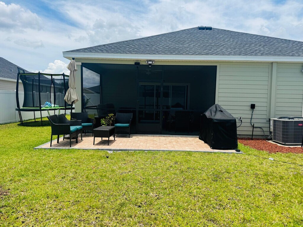 Modern Halle model by Lennar, nearly new (built in 2023), located in the desirable Freedom Crossing Preserve community in Southwest Ocala. This 4-bedroom, 2-bath home features a contemporary open-concept design with a kitchen that seamlessly integrates with the living and dining areas—perfect for family gatherings or entertaining friends. The social area extends to a pleasant covered lanai and a fully fenced backyard, ideal for kids to play safely, enjoying outdoor meals, or simply relaxing in Florida’s beautiful weather. Freedom Crossing Preserve is a newer single-family home community built by Lennar between 2021 and 2023, offering a community pool, well-kept green areas, sidewalks, and walking paths, creating a peaceful, family-friendly environment. The location in SW Ocala is unbeatable: just minutes from the commercial corridor of SR 200, shopping centers like Paddock Mall, supermarkets, restaurants, medical services, and schools—combining quiet residential living with quick access to everything you need. An ideal choice for those looking to rent a practical, bright, nearly new home in a community with amenities and an excellent location in Ocala.