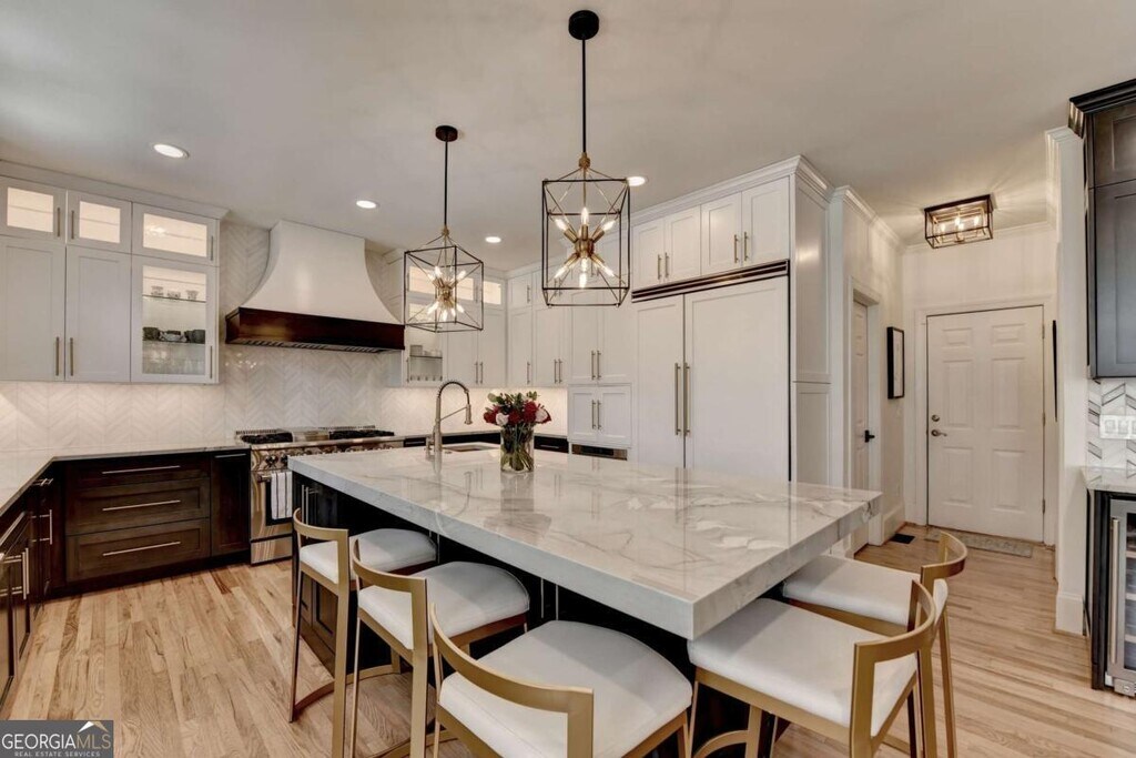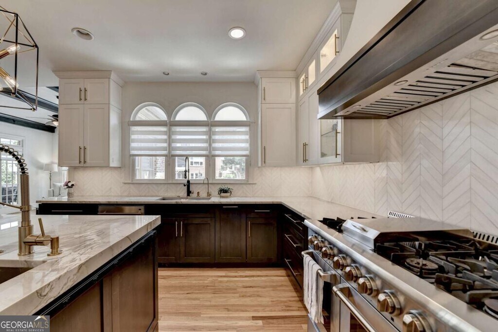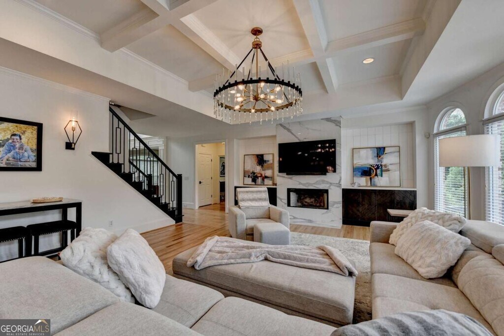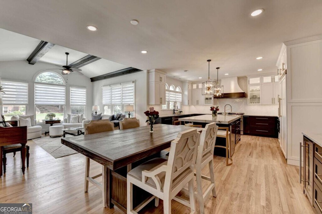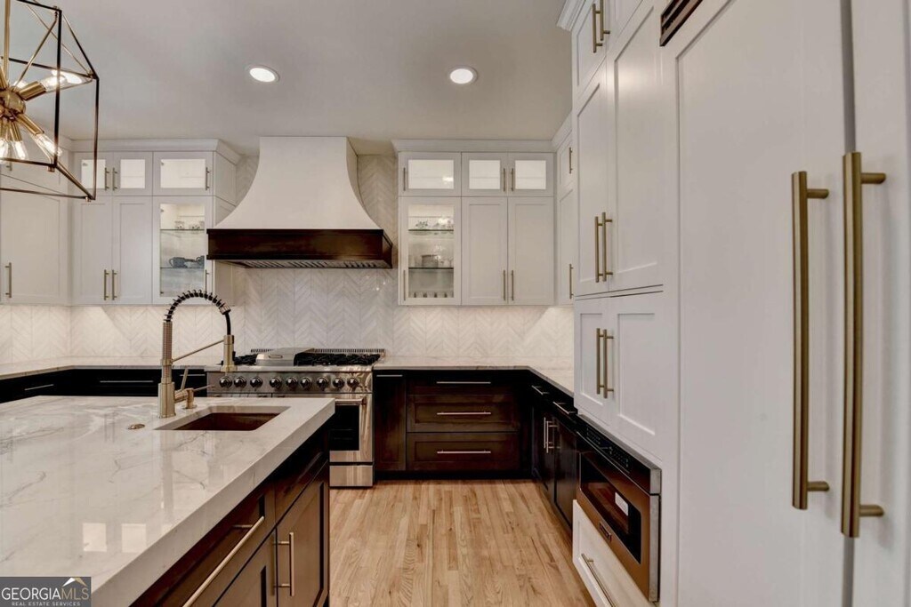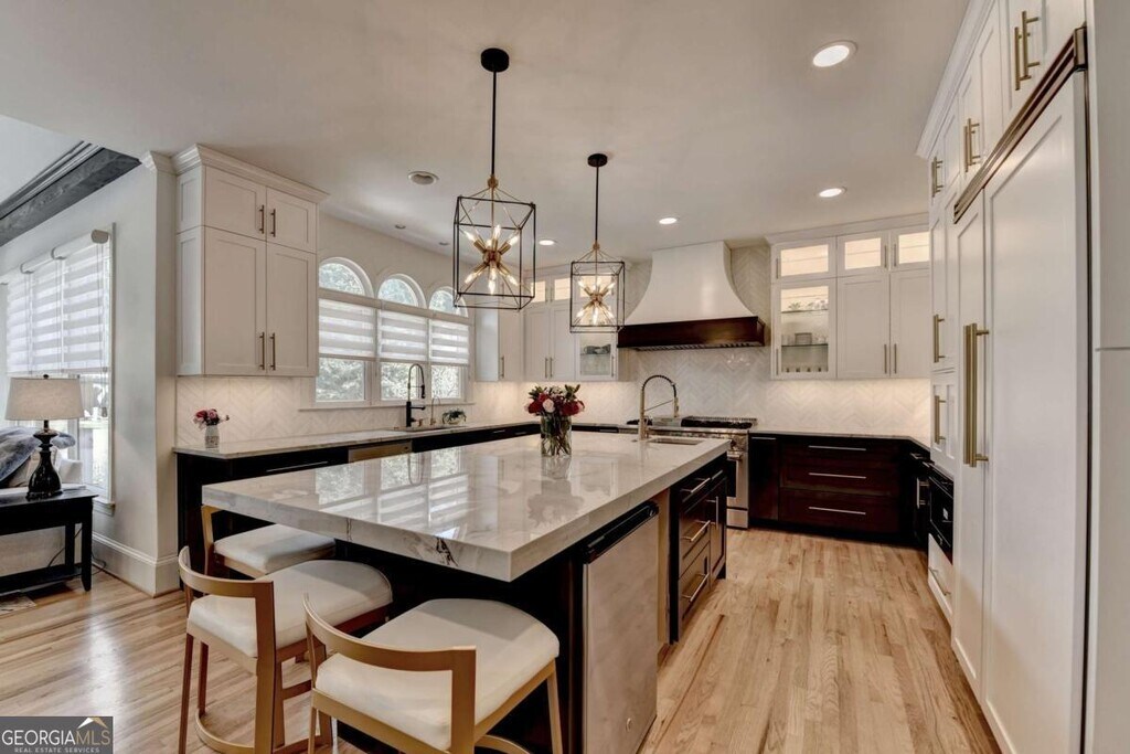 Exquisite, PARTIALLY FURNISHED AND NEWLY RENOVATED, bright & open floor plan, CUL-DE-SAC 7 bed/5 bath home with HEATED SALTWATER POOL and jacuzzi, professionally finished TERRACE LEVEL and over $500,000 in UPDATES! This exquisite home is perfect for corporate relocation and executives looking for a smooth transition to the area with luxury living and top-tier schools within walking distance. Located in Forsyth county's most prestigious Laurel Springs gated community, with 24/7 security, on a Jack Nicklaus-designed golf course with swim and tennis, pickleball courts, a Clubhouse, basketball courts, a playground, a dog park, and community events for adults and children and in the sought-after LAMBERT HIGH SCHOOL district. Enter through the custom double front doors into the 2 story hardwood foyer. To your right is the family-sized dining room with tray ceiling, picture frame molding and hardwood floor. To your left is an elegant office with crown molding and hardwood floor. The grand family room features a beautiful modern floor-to-ceiling modern tiled FIREPLACE, custom built-ins, coffered ceiling and bowed wall of windows overlooking the stunning pool and backyard. The newly renovated gourmet kitchen is truly a chef's dream! It features all new floor-to-ceiling custom cabinets, high-end appliances, 6-burner GAS RANGE with HOOD, marble backsplash, quartzite countertops, an oversized island, a BEVERAGE center, all new fixtures and lighting and a WALK-IN PANTRY with custom cabinetry, quartzite countertops and extra outlets for appliances. The sunroom with cathedral ceiling features wooden beams and French doors to the entertaining deck. A convenient guest room with a full tiled bathroom, a laundry/mud room featuring custom cabinetry and quartz countertops. Head upstairs to the expansive second floor. Rest and relax in the romantic master suite with its cozy sitting area with new split-face stone gas fireplace and custom cabinetry and tray ceiling. The opulent spa bathroom features custom floating cabinets with an expansive quartz countertop space and dual sinks, split-face stone backsplash, an oversized walk-in glass shower with double shower heads, all new tile flooring, new modern luxurious soaking tub, all new modern fixtures and lighting and a huge walk-in closet. An additional 4 large secondary bedrooms and 2 full tiled en-suite bathrooms. One of the bedrooms is an oversized bonus room style with bowed wall of windows. The professionally finished terrace level is an entertainer's dream and features a family room with a new split-face stone gas fireplace, coffered ceilings and picture frame paneling and a custom kitchen with high-end solid oak cabinets, floor-to-ceiling split-face stone backsplash, floating cabinets with LED lighting, granite countertops, two beverage coolers, stovetop, sink, dishwasher, and a stone-designed wine closet. This incredible space also features a large game room with tray ceiling and wood paneling, a TV/media room with reading nook and tray ceiling, a bedroom, full, modern feel, tiled bathroom with shower/tub and an exercise room. This homes resort-style outdoor areas are truly sublime! New modern style HEATED SALTWATER linear pool and JACUZZI with tanning bed, LED lights, basketball hoops in the shallow end, seashell glitter in the pebble tec, outdoor SONOS sound system, new upper DECK with TREX flooring and seating area and new under deck entertaining space with outdoor TV, MARBLE STONE pool hardscape pavers with two more sitting areas by the jacuzzi and the shallow end with modern FIREPIT. Completely FENCED and immaculately landscaped! All NEW CARPETING in four bedrooms and newly installed WOOD flooring in the office and main floor guest bedroom, along with refinished wood flooring throughout the rest of the home for a light and updated modern design. ***Pets considered with application, deposit and owner approval***