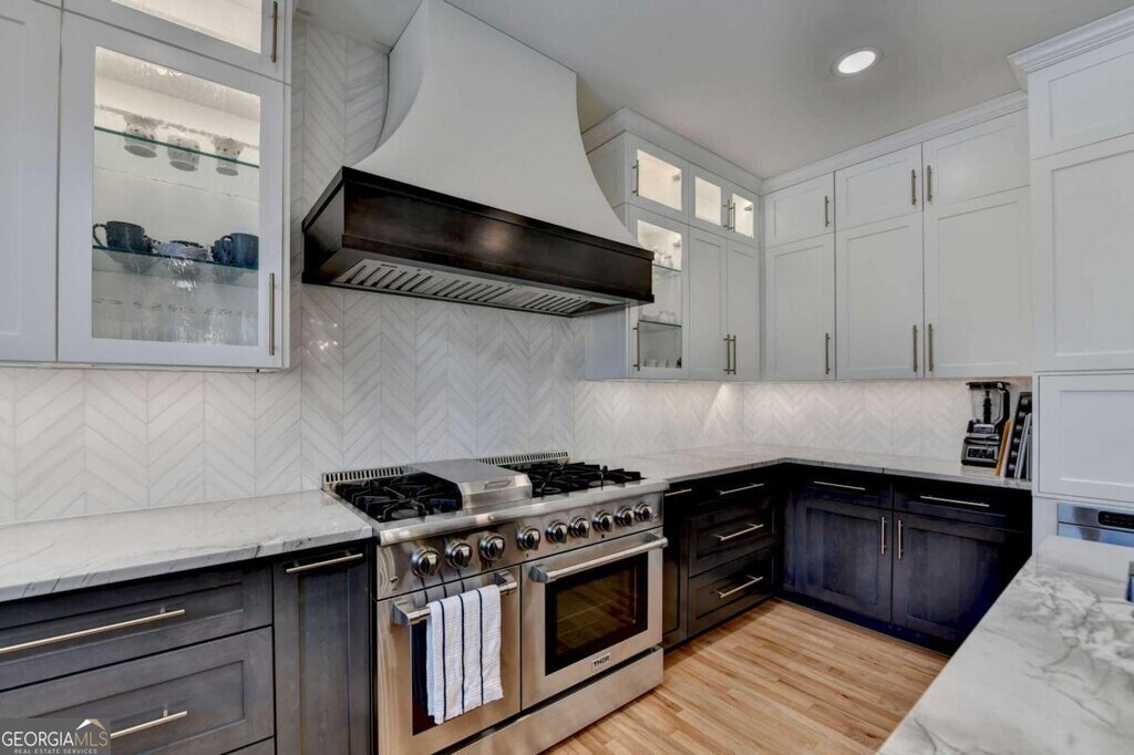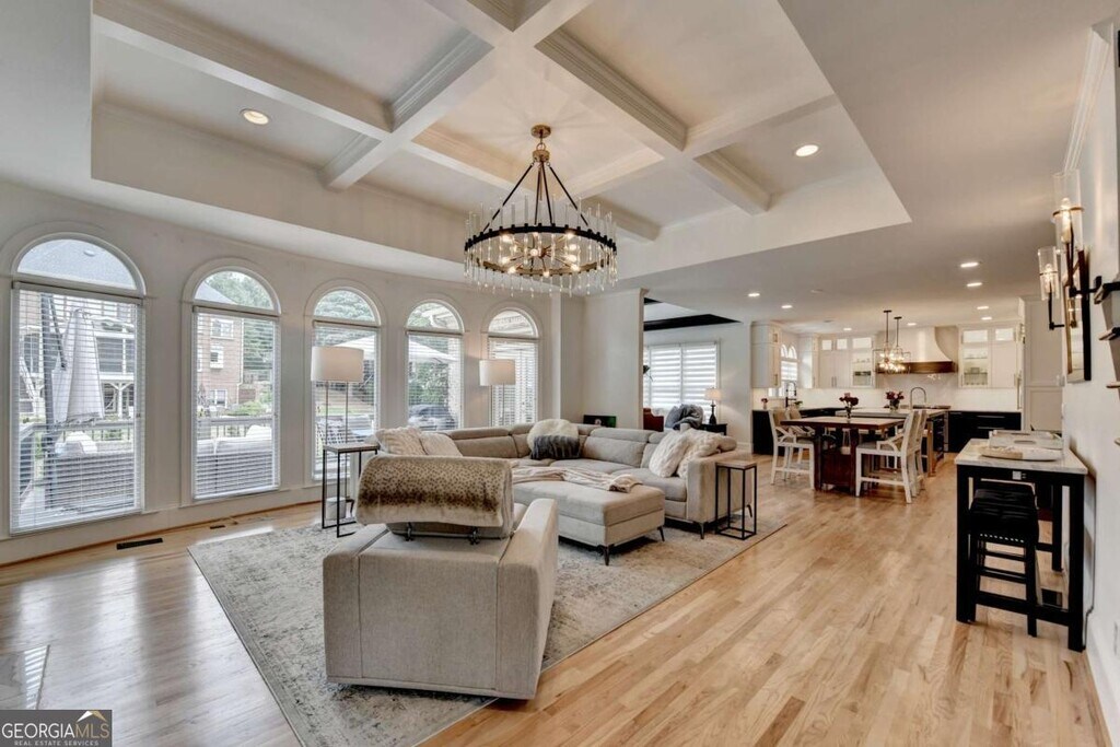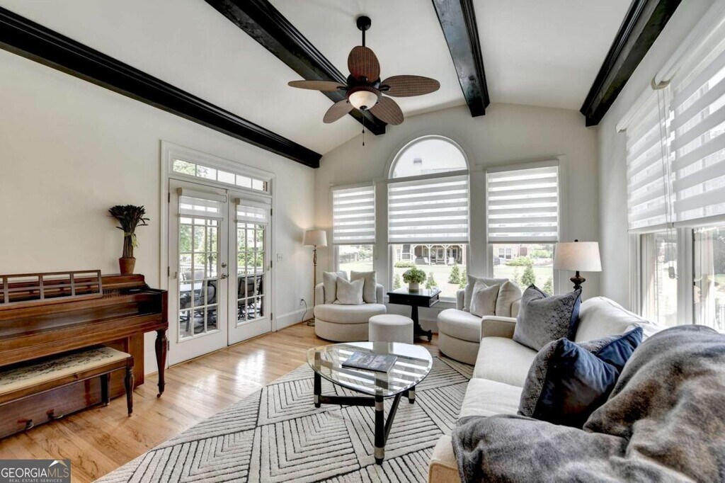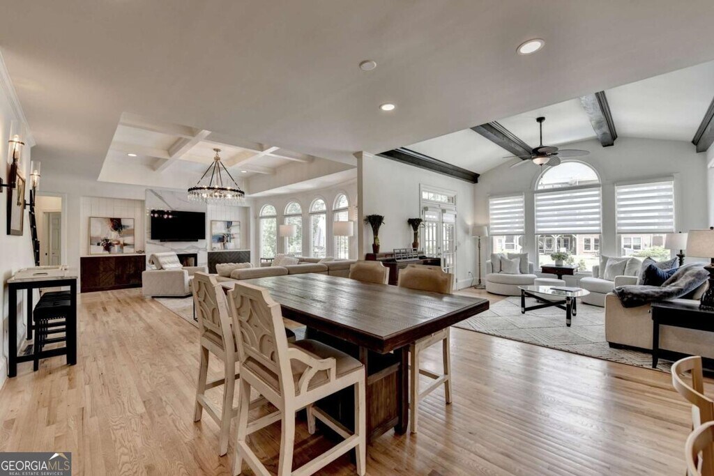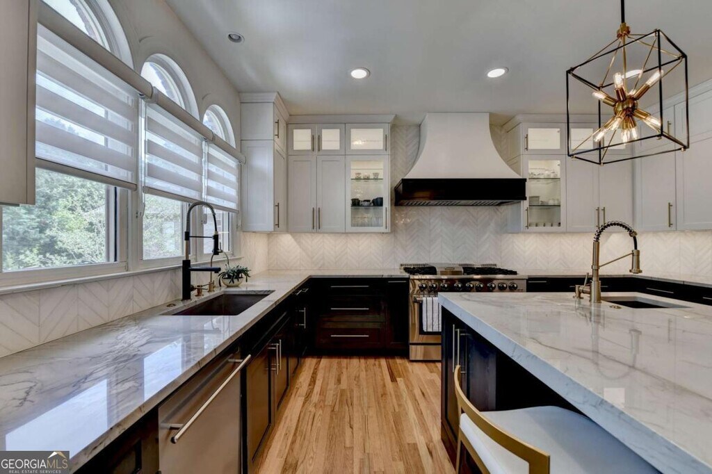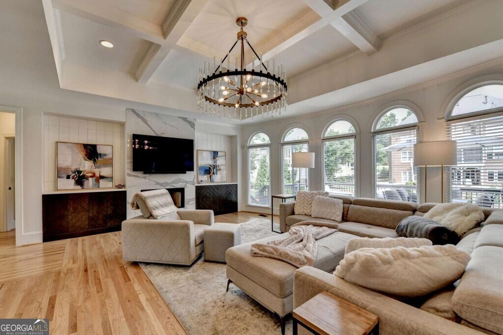 Exquisite, PARTIALLY FURNISHED AND NEWLY RENOVATED, bright & open floor plan, CUL-DE-SAC 7 bed/5 bath home with HEATED SALTWATER POOL and jacuzzi, professionally finished TERRACE LEVEL and over $500,000 in UPDATES! This exquisite home is perfect for corporate relocation and executives looking for a smooth transition to the area with luxury living and top-tier schools within walking distance. Located in Forsyth county's most prestigious Laurel Springs gated community, with 24/7 security, on a Jack Nicklaus-designed golf course with swim and tennis, pickleball courts, a Clubhouse, basketball courts, a playground, a dog park, and community events for adults and children and in the sought-after LAMBERT HIGH SCHOOL district. Enter through the custom double front doors into the 2 story hardwood foyer. To your right is the family-sized dining room with tray ceiling, picture frame molding and hardwood floor. To your left is an elegant office with crown molding and hardwood floor. The grand family room features a beautiful modern floor-to-ceiling modern tiled FIREPLACE, custom built-ins, coffered ceiling and bowed wall of windows overlooking the stunning pool and backyard. The newly renovated gourmet kitchen is truly a chef's dream! It features all new floor-to-ceiling custom cabinets, high-end appliances, 6-burner GAS RANGE with HOOD, marble backsplash, quartzite countertops, an oversized island, a BEVERAGE center, all new fixtures and lighting and a WALK-IN PANTRY with custom cabinetry, quartzite countertops and extra outlets for appliances. The sunroom with cathedral ceiling features wooden beams and French doors to the entertaining deck. A convenient guest room with a full tiled bathroom, a laundry/mud room featuring custom cabinetry and quartz countertops. Head upstairs to the expansive second floor. Rest and relax in the romantic master suite with its cozy sitting area with new split-face stone gas fireplace and custom cabinetry and tray ceiling. The opulent spa bathroom features custom floating cabinets with an expansive quartz countertop space and dual sinks, split-face stone backsplash, an oversized walk-in glass shower with double shower heads, all new tile flooring, new modern luxurious soaking tub, all new modern fixtures and lighting and a huge walk-in closet. An additional 4 large secondary bedrooms and 2 full tiled en-suite bathrooms. One of the bedrooms is an oversized bonus room style with bowed wall of windows. The professionally finished terrace level is an entertainer's dream and features a family room with a new split-face stone gas fireplace, coffered ceilings and picture frame paneling and a custom kitchen with high-end solid oak cabinets, floor-to-ceiling split-face stone backsplash, floating cabinets with LED lighting, granite countertops, two beverage coolers, stovetop, sink, dishwasher, and a stone-designed wine closet. This incredible space also features a large game room with tray ceiling and wood paneling, a TV/media room with reading nook and tray ceiling, a bedroom, full, modern feel, tiled bathroom with shower/tub and an exercise room. This homes resort-style outdoor areas are truly sublime! New modern style HEATED SALTWATER linear pool and JACUZZI with tanning bed, LED lights, basketball hoops in the shallow end, seashell glitter in the pebble tec, outdoor SONOS sound system, new upper DECK with TREX flooring and seating area and new under deck entertaining space with outdoor TV, MARBLE STONE pool hardscape pavers with two more sitting areas by the jacuzzi and the shallow end with modern FIREPIT. Completely FENCED and immaculately landscaped! All NEW CARPETING in four bedrooms and newly installed WOOD flooring in the office and main floor guest bedroom, along with refinished wood flooring throughout the rest of the home for a light and updated modern design. ***Pets considered with application, deposit and owner approval***