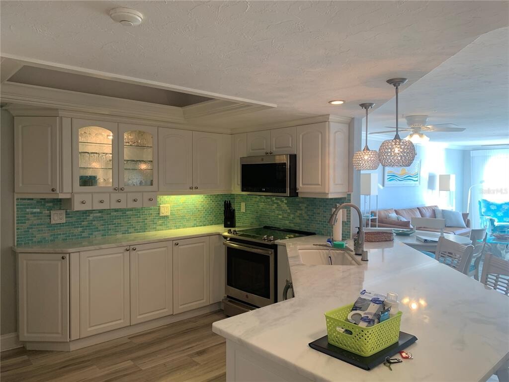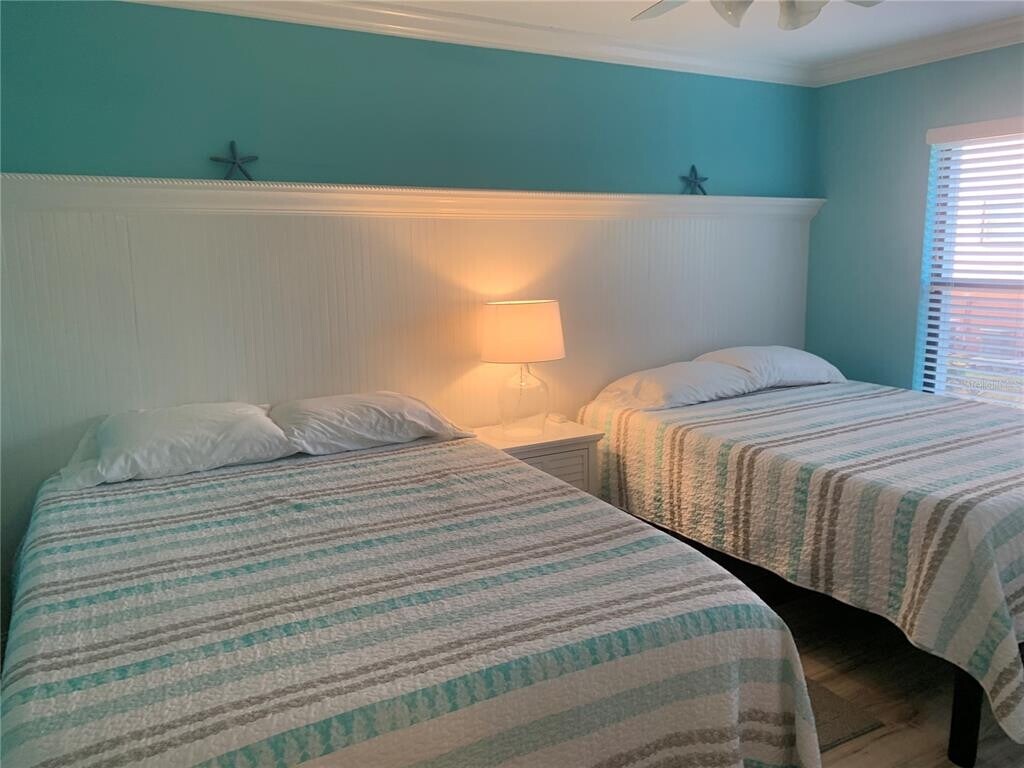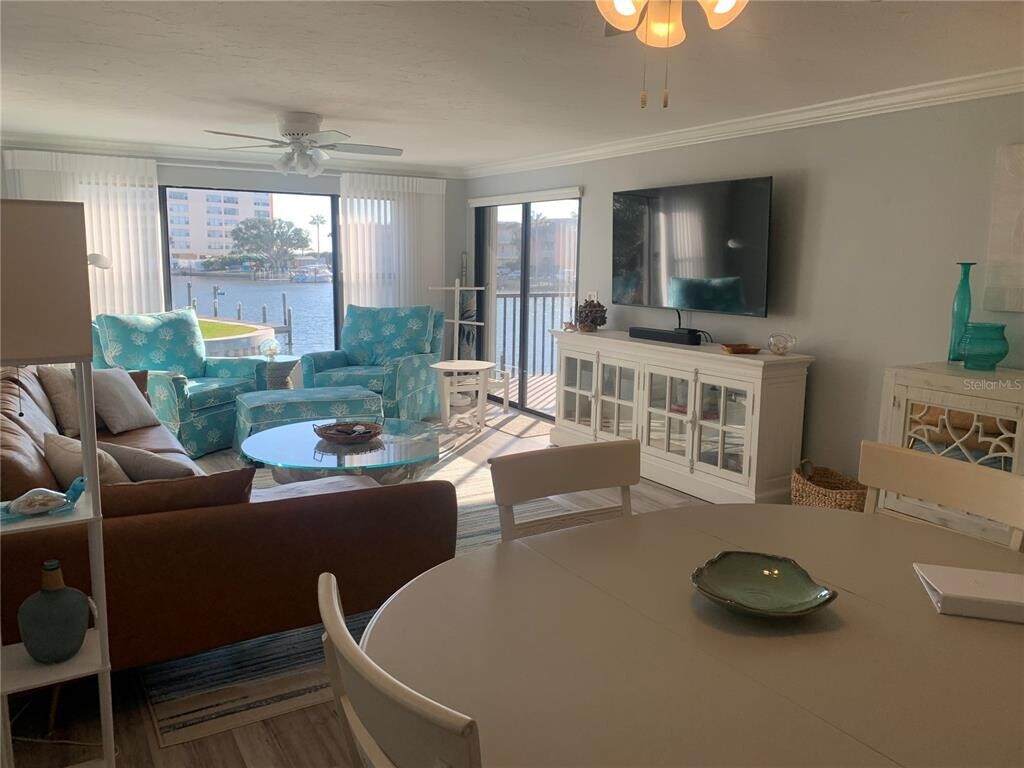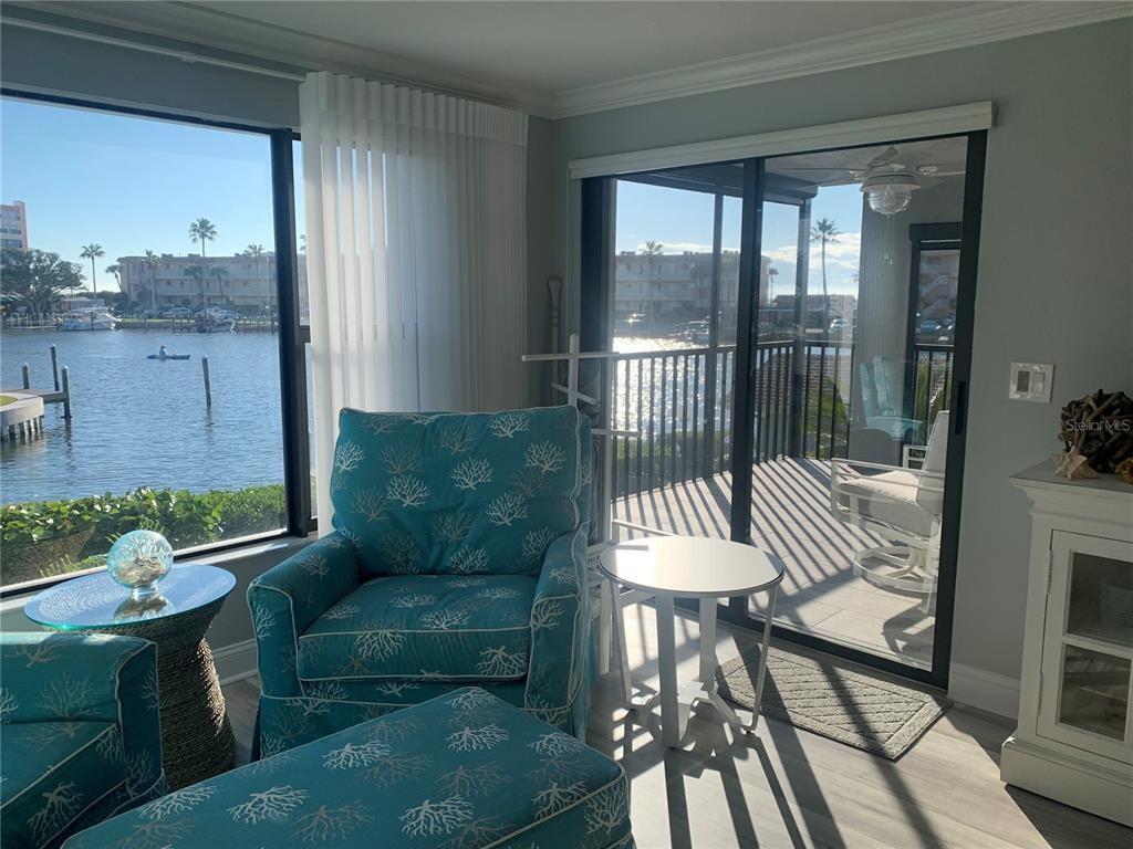 Gorgeous waterfront condo at The Moorings! You will love the view and the comforts of this well decorated condo in a coastal theme with a stunning view of Blind Pass Intercoastal and a partial view of the Gulf of Mexico just beyond. This community consists of just 17 condos and is on the quieter southern end of Siesta Key. Enjoy your private boat slip or just fish off the dock. Primary bedroom has customized storage and closet area and features a king-sized bed. Beautiful ensuite bathroom is remodeled and updated,as is the guest bath. This space also opens up to the screened in 12 x 10 balcony overlooking the water where there are usually kayakers and paddleboarders. The second bedroom has a queen and a twin bed. You will love the kitchen and eating your meals from bar area where you can view out your large living room window with electric shades. For your convenience,The Siesta Key Trolley,which is a constant running free "hop on" and "hop off" way to get to other areas on the Key,that stops right in from on Midnight Pass Rd. Repeat guest cannot return and this beautiful vacation property just opened up. MLS# A4620126