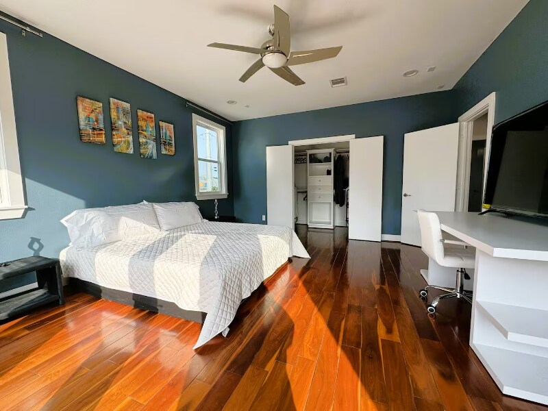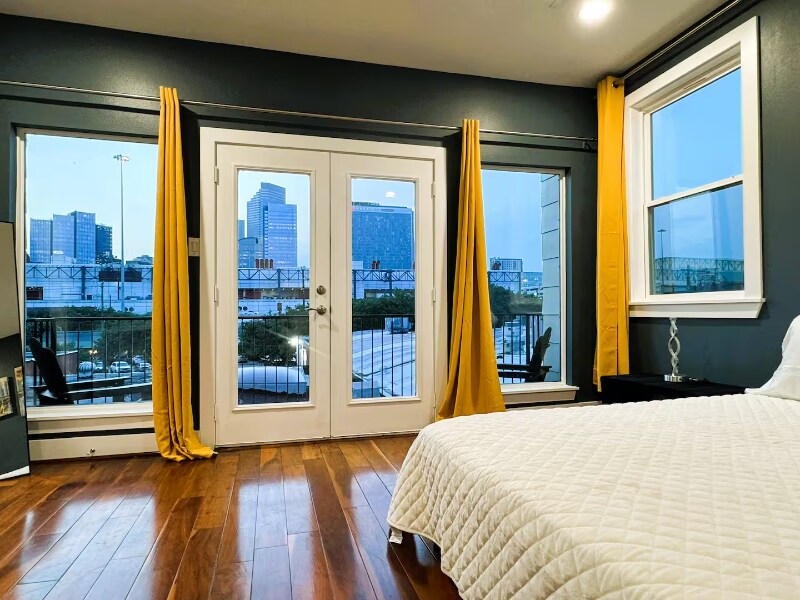 Property Id: 2175313 Welcome to the Skyline Views at the Center of the HOUniverse! This fabulous 4 story modern and industrial style townhome is located in East Downtown, Houston. We are minutes away from the Convention Center (GRB), Toyota Center, Minute Maid Park, and the Shell Energy Stadium. Enjoy breathtaking views of the Houston skyline & adjacent stadiums in our rooftop terrace! Our home primarily caters to business personnel, conference exhibitors/attendees, sports fans and small families visiting Houston.