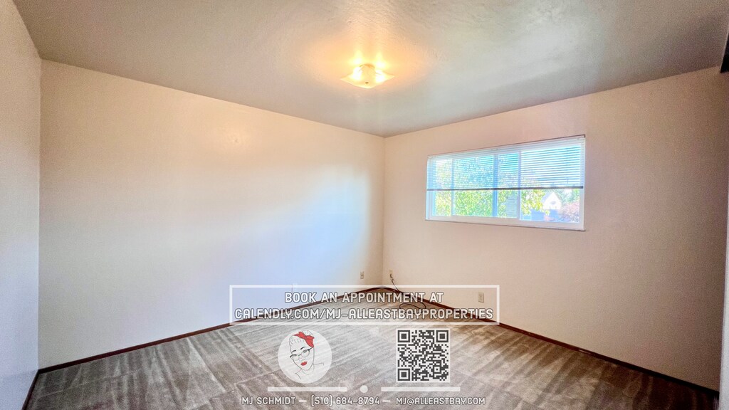 Virtual tour & application --> In-Person Appointments AI scheduler--> Text , Email - Welcome to your new home centrally located in a beautiful El Cerrito neighborhood. This top floor unit has a large deck perfect for outdoor entertaining or gardening. Close to Bart and all modes of transportation. Great school district and walking trails are just a few of the perks. NO Pets Includes 1 garage space and 1 driveway space. Water & Garbage On-site Laundry. Maryanne “M.J.” Schmidt 2324 Powell Street Emeryville, Ca 94608 main mobile DRE 02125244 All East Bay Properties Cal DRE# 01516255 *We are an Equal Opportunity Housing Provider and follow all fair housing laws. For more information, contact California Department of Fair Housing and Employment (DFEH) at Person