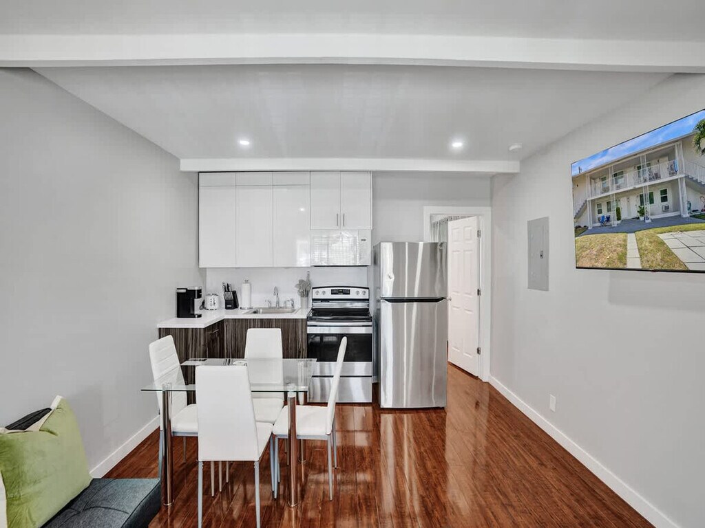 The advertised rate of $2,606/month is the lowest available price, based on a 30 day(s) stay with a move-in date of August 2, 2026. Rates vary depending on the duration of stay, season, and other parameters. For exact pricing and additional pricing components, please visit our website and enter your desired move-in and move-out dates. The rate is applicable when billed upfront; it can be higher if billed in multiple payments. Welcome to your perfect coastal getaway! Feel at home in this charming, first-floor 1-bedroom vacation rental near Pompano Beach. This cozy apartment offers an ideal combination of comfort, convenience, and relaxation. If you would like a 12 PM noon checkout, please inquire whether it's available for your stay for an additional $25 by 9 PM the night before your scheduled departure. There is a $100 non-refundable fee per pet to cover the additional cost of cleaning. Situated just a stone's throw away from the stunning Pompano Beach, this apartment is located in a tranquil and friendly neighborhood. Occupancy limits are strictly enforced. No parties, events, or gatherings are allowed, and any guest found to be having a party will be required to leave immediately without a refund, and will incur a $500 fine. Quiet hours are from 10 PM to 9 AM, and any noise complaint will result in a $500 fine. No indoor smoking is allowed, but outdoor smoking is permitted at least 10 feet from the building, provided all windows and doors to the unit remain closed, and any violation will incur a $500 fine. One parking spot per reservation is available in the driveway for standard-size personal vehicles only; no trailers, boats, vessels, recreational vehicles, buses, box trucks, or oversize or commercial vehicles are allowed, and any violation will incur a $500 fine. Check-in is any time 4 PM or later. To help ensure the safety of our guests, the property is monitored with exterior cameras that capture and record audio and video. No unplugging, moving, or any alteration of the security cameras or any of its cords, base station, or any other parts/apparatus is allowed, and any violation will incur a $1000 fine. Guests must send a photo of a valid ID that matches the name on the reservation via message before receiving check-in instructions. Full legal first and last names of all guests must be provided upon booking. The host reserves the right for service providers to access the exterior of the property to maintain landscaping, provide pest control, and provide other maintenance services during the guest's reservation. Since South Florida has a sub-tropical climate, it is possible for an insect or gecko to get inside. Refunds for finding insects or geckos are not given. The initial supply of consumables and towels/linens are stocked based on the capacity of the unit. Additional consumables or towels/linens are available for an additional fee. Do not adjust any mounted TVs. Crypto mining or similar activities are not allowed. Any guest who would like to have packages delivered must first obtain host permission. No packages may be delivered to the property outside of the guest’s booked and paid reservation dates. Receiving USPS mail is not permitted. Once the stay has been completed, guests must refrain from leaving luggage or personal belongings upon checkout. Please note that the partner will place a $350 refundable authorization hold on a credit or debit card about 72 hours before arrival for security. If damages or policy violations occur, related charges may apply; otherwise, the hold is released after checkout and processed within 5-7 business days. [SI]