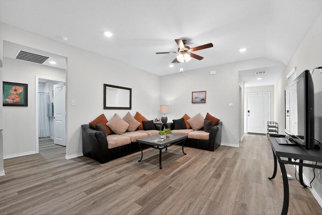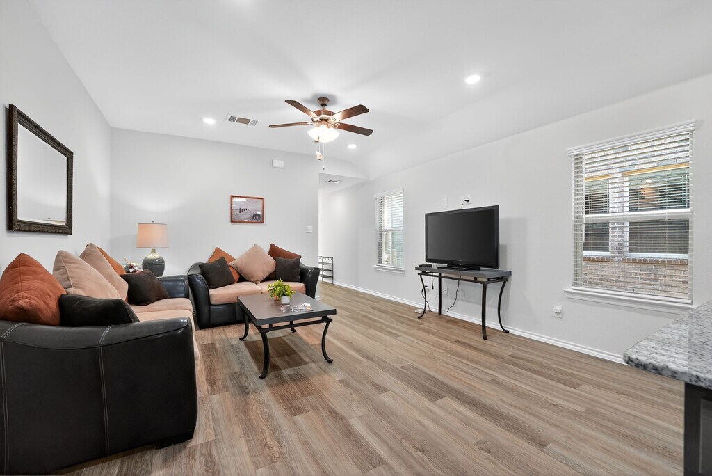 This home offers three bedrooms and two bathrooms in the sought-after Elevon community. The first bedroom has a queen-size bed, a walk-in closet, and an en suite bathroom with a double vanity and a walk-in shower. Two additional bedrooms have full-size beds and standard closets. The fully equipped kitchen features an island with seating for three, a stainless steel refrigerator, freezer, gas stove, oven, microwave, quartz countertops, and all the essentials to make cooking easy. There is a dining table for four and a spacious living room with two couches, a coffee table, a TV stand, a ceiling fan, and a 52-inch smart TV. The backyard patio is furnished and ready for relaxing or entertaining. This is a mint-condition home that has never been lived in. It has an open layout that blends comfort and style. The home has a two-car garage and driveway, walk-in closets, Smart Tech remote security entry, climate and lighting control, and a sprinkler system. Outside, you can enjoy a well-landscaped fenced backyard with dual fastened gates for extra privacy and security. Living in Elevon means resort-style amenities right outside your door. Swim in the community pool, grill at the cooking station, visit the multiple playgrounds, or cast a line at the designated fishing spot. Explore both natural and paved trails perfect for walking or biking. This home is ready for you to move in and enjoy the best comfort, style, and community living. Note: Utilities are included with a monthly cap of $260, and the rental price may vary based on the number of occupants. Space This home is unique because it blends brand-new modern finishes with thoughtful touches that make everyday living easy. The open layout, fully equipped kitchen, and furnished living spaces create a warm and functional environment. With three bedrooms, it offers plenty of privacy, and up to five people can live here comfortably while enjoying access to Elevon's resort-style amenities. Neighborhood overview The house is in the Elevon master-planned community in Lavon, a quiet town just northeast of the Dallas-Fort Worth metro. Elevon offers resort-style extras like pools, splash pads, walking trails, fitness stations, dog parks, and lush green spaces while still being a manageable commute into the city. Life in Lavon feels small and peaceful, yet its just a short drive from larger cities like Rockwall, Garland, and Plano. **Housing Vouchers Accepted! **Price shown is base rent and may not include non-optional fees for utilities.
