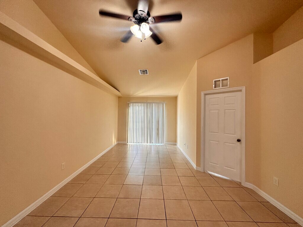 This is three bedroom two bath duplex home 1250 square-foot under air with one car garage gourmet kitchen comes with elegant black appliances and granite countertop, fan in every room, warm wall color , tile throughout . washer and dryer hook up in the garage. Great location, walking distance to Caloosa, middle school and elementary school, Cape Coral hospital, and City Hall,