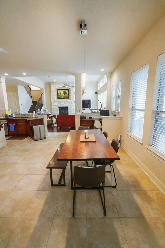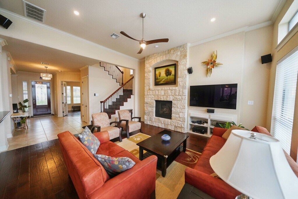 Introducing this impeccable executive-style residence located in the highly sought-after Terra Bella subdivision. This stunning 5-bedroom, 4.5-bathroom David Weekly built home is the epitome of luxury living. As you step through the grand entryway, you'll be greeted by a distinguished formal dining room and a separate office, leading into the expansive family room adorned with soaring ceilings, abundant natural light, and a cozy wood-burning fireplace - perfect for chilly evenings. The chef's kitchen is a culinary delight, boasting premium upgrades such as granite countertops, a tasteful tiled backsplash, top-of-the-line stainless steel appliances with dual ovens, and a generously sized island countertop featuring a gas-burning cooktop. Whether you prefer to sip your morning coffee in the extended breakfast area or enjoy quick meals at the convenient island, this space is designed for both comfort and functionality. Retreat to the lavish master bedroom, offering ample space and a fully updated en-suite bathroom complete with dual vanities, an expansive walk-in shower, and a meticulously organized closet. Upstairs, discover a fully equipped home theater room with speakers, a projector, screen, and AVR, alongside an additional game room, catering to all your entertainment needs. The residence also features a Ring Alarm System with three external cameras and one internal camera, a WiFi-capable Smart Sprinkler System, and Smart Thermostats, enhancing both convenience and security. Venture outside to the true highlight of this property - an elevated deck offering picturesque views of the surrounding landscape, perfect for al fresco dining or simply unwinding amidst nature. Conveniently located with easy access to 281 and the vibrant amenities of the Stone Oak area, this exceptional property promises a lifestyle of luxury and convenience. Don't miss the opportunity to showcase this extraordinary home - schedule a showing today!