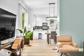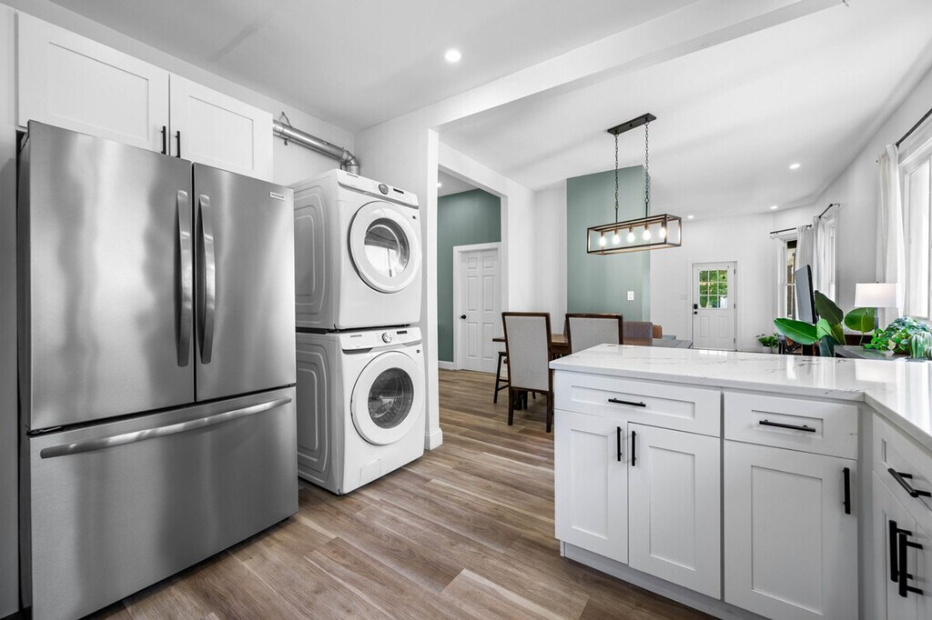 Feel at home in this spacious property offering a 5-bedroom, 3-bathroom set-up with 4 bedrooms in the main home plus a private studio in the back, ideal for groups or professionals wanting extra privacy. This versatile property offers a comfortable 4-bedroom set-up with two unique living options. The main house features a bright and welcoming living room with a smart TV, a fully stocked kitchen, and on-site washer and dryer. The private studio, located in the back with its own entrance, is perfect for extra privacy and features a kitchenette with a stovetop, microwave, full fridge, and essentials, and a seating area with a smart TV. Both spaces are thoughtfully furnished and include utilities and Wi-Fi. This property is pet friendly with a fee of $250 per pet per stay. Driveway and street parking are available. With proximity to downtown Indianapolis, Fountain Square, and major hospitals, this property is ideal for traveling professionals, medical staff, or families needing flexible housing. Pets are not allowed on the furniture and must be secured when not in your presence. There is a smoking fine of up to $500 if any evidence of smoking anything in the studio is discovered, including discovery of ash, refuse, or smell by our cleaning team or other management staff. [SI]