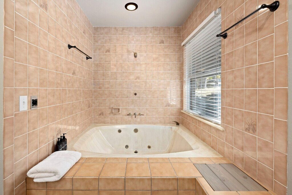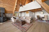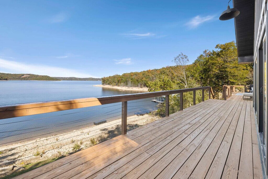 Feel at home in this huge 7-bedroom home in Camel Rock, offering easy access to Beaver Lake's shore and stunning views from every room. The large windows throughout the house flood the space with natural light and provide picturesque vistas of the lake. This home accommodates up to 18 guests and features two living areas, a large deck, and three bathrooms. The open-concept living space and kitchen area boast gorgeous views of Beaver Lake from every angle. The kitchen is fully stocked. There is an additional living space with lounge seating, a Smart TV, and board games. A washer and dryer are available for guest use. Two kayaks and a paddle board are available. This property allows a maximum of 3 dogs, with a fee of $90 per dog. Located 14 miles from Downtown Rogers and 3 miles from Rocky Branch Marina, this home offers easy access to Beaver Lake from the backyard. Enjoy the sweeping views of Beaver Lake from the screened-in patio with seating, a dining table, and a Smart TV, or from the large outdoor deck with a dining table and grill. The home is located at the end of a long dirt road, and a 4WD vehicle is recommended. Parties or guest actions that result in disturbances, property damage, extensive extra cleaning, or smoking indoors will incur a fine of $1,000. Dogs discovered at the property without prior notice or cats discovered at the property will incur a fine of $400. Unauthorized checkout delays will incur a fine of $100 per hour. If you smoke in the home, you will be fined $1,000 plus the cost of any smoke remediation necessary. Quiet hours are between 10:00 PM and 10:00 AM. Check-in is any time after 3:00 PM. [SI]