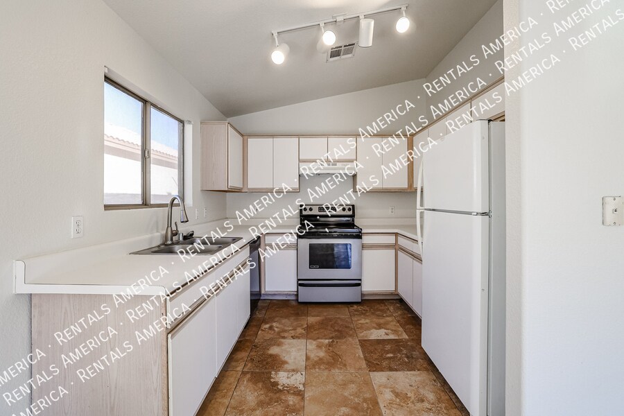 SHARP HOME! * TILE ENTRY * NEUTRAL CARPET * LIGHT & BRIGHT OPEN FLOORPLAN * WHITE CABINETS * VAULTED CEILINGS * COVERED PATIO * BEAUTIFUL DESERT LANDSCAPE FRONT & BACK * DON'T MISS THIS ONE! * ACROSS FROM GREENBELT. Available NOW!!! One Time Admin Fee: $300, Pet Deposit: $300/pet (If applicable), Rental Service Fee: 2%. Resident Benefits Package: $39/month. Helping Heroes Discount Available! Carpet Cats Allowed Ceramic Tile Disposal Dogs Allowed Garage Pets Allowed Vaulted Ceilings