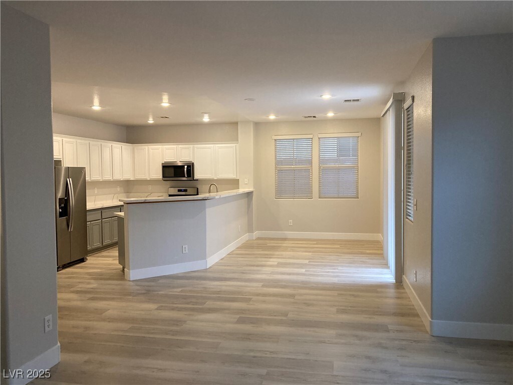 Introducing a stunning 4-bedroom, 2.5-bathroom house located in the S.W. of Las Vegas, NV. This recently renovated home boasts a fresh and modern appeal with new paint and flooring throughout. The kitchen is a true highlight, featuring brand new quartz countertops and sleek stainless steel appliances. Situated on the edge of the majestic mountains, With its spacious layout and impeccable upgrades, with a main floor bedroom and bath. 2 living areas on main floor and a large loft upstairs. Don't miss out on the opportunity to call this mountain-edge retreat your own.