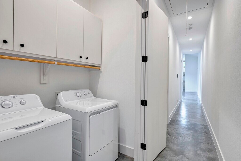 AVAILABLE 1/3/26! Welcome to 907 Kern #B,modern construction in the Heights features 2 bedrooms/2 baths + refrigerator/washer/dryer. Security gate leads into a covered front porch. Once inside you are welcomed by polished concrete floors and 14 foot soaring ceilings. Striking kitchen offers granite counters,tile backsplash,stainless steel appliances and eat-in bar. Open floorplan is ideal for everyday living and entertaining. Primary bedroom with walk-in closet,private deck and spa-like bath which boasts double sinks,granite counter and walk-in shower. Secondary bedroom with nice natural light,ceiling fan and connected bath with shower/tub. Tankless water heater and energy efficient windows! Security system in place and landlord pays for monitoring. Off street parking. Close to Heights area restaurants,shops,Farmers Market,parks and convenient location to downtown. MAKE YOUR APPOINTMENT TODAY! Pets case by case basis. No smokers. All info per Landlord. MLS# 6015131