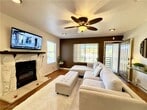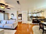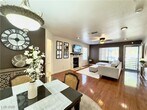 Gorgeous 2BD/2BA upstairs condo w/modern furnishings & beautiful wood floors. Kitchen features granite counters, large pantry, all stainless steel appliances—just bring groceries. Primary suite has 2 closets w/mirrored doors & ensuite bath w/soaking tub. 2nd suite faces west, offers recessed lighting, & ensuite bath w/walk-in steam shower. Community amenities include pool, BBQ areas & tennis court. Assigned covered parking + guest parking. No tours—video tour on our website. Rates vary by lease term; shorter terms = higher rate.