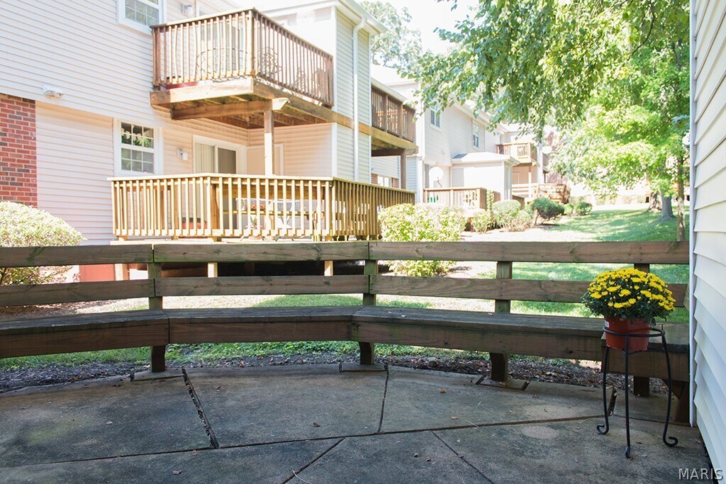 Extra-large and stylish 2-BR condo in St. Louis Area's premier condo community. Brentwood Forest. A full 1060 square feet in a first floor corner unit meaning extra windows. Across the street from the complex's two swimming pools and a stone's throw from tennis courts. Eat-in kitchen with tall built-in pantry closet, separate laundry room, extra-large bedrooms, sliding patio doors to a spacious deck with built-in, wrap-around seating and a lovely view.