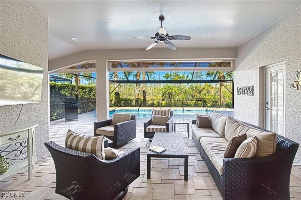 DON'T MISS OUT on this gorgeous pool home with GOLF included. This home is beautifully decorated with many upgrades,it has 2 bedrooms,2 baths with den and two car garage. Enjoy the view on your lanai as you soak up the sun by the pool or sipping your morning coffee or favorite drink as you lounge on the beautiful lanai with a picture window screen. Colonial Country Club offers resort-style living with tons of amenities including bundled golf,tennis,pickleball,bocce,fitness center,nature trails,clubhouse with bar and fine dining. Close to shopping,dining and the airport.