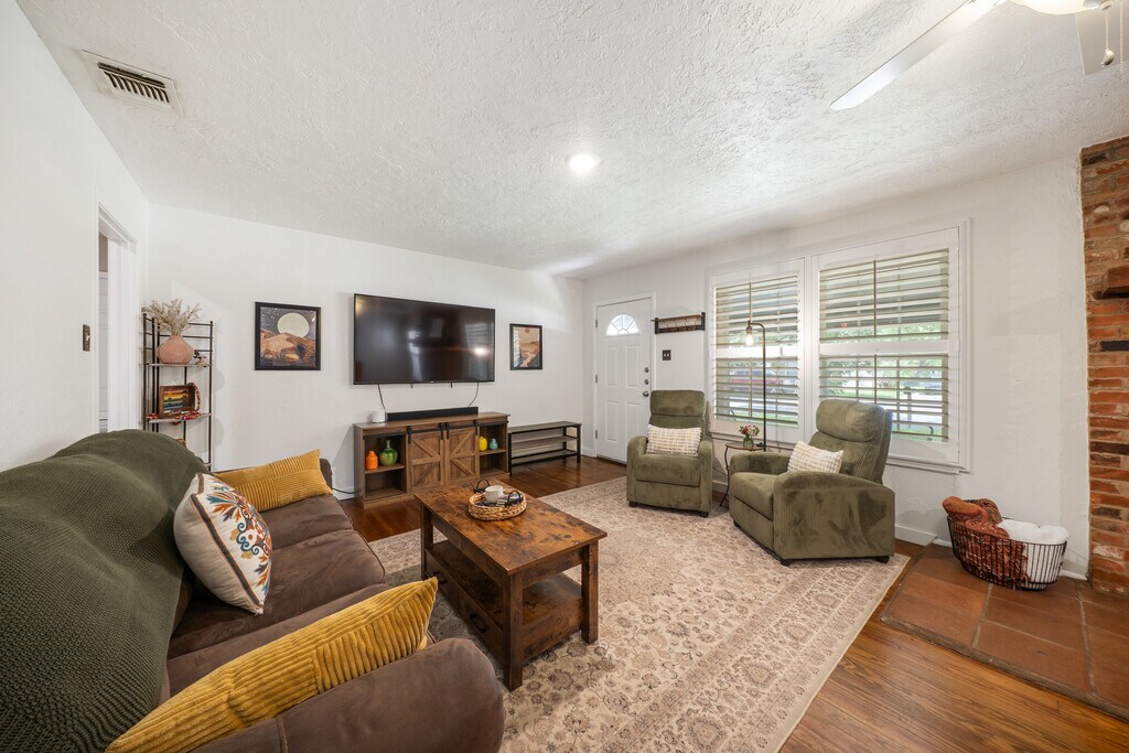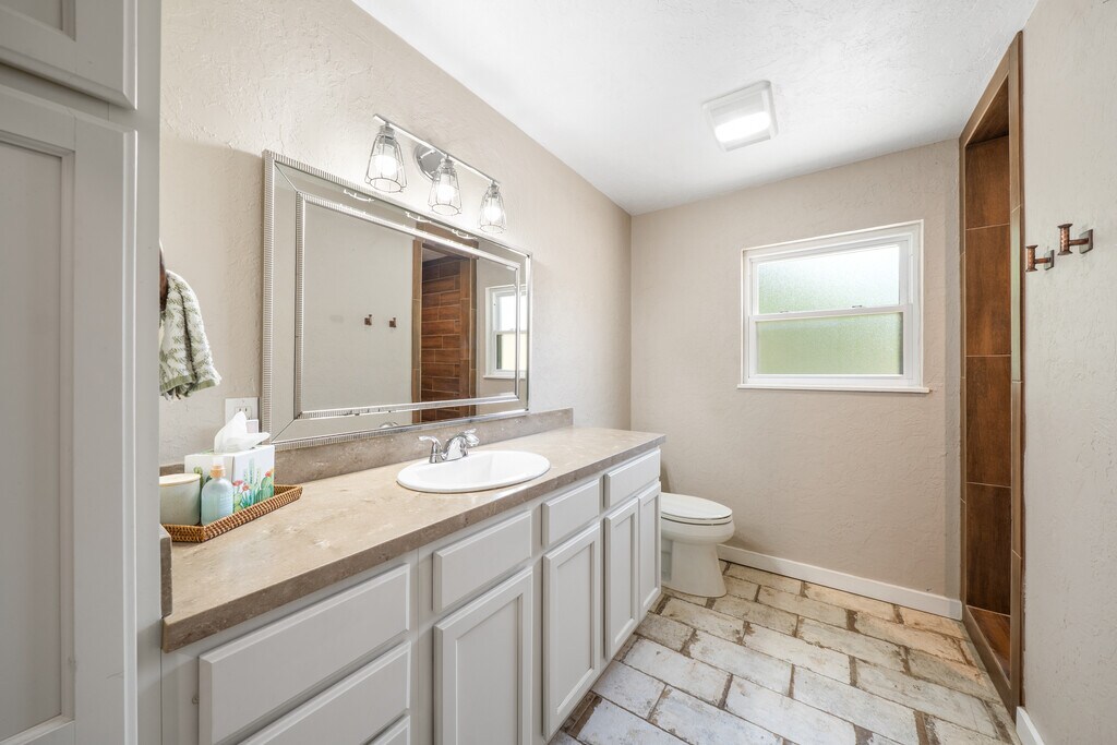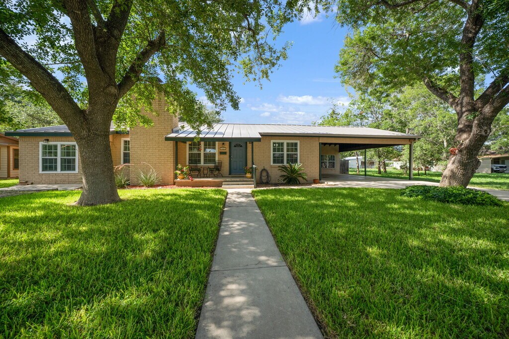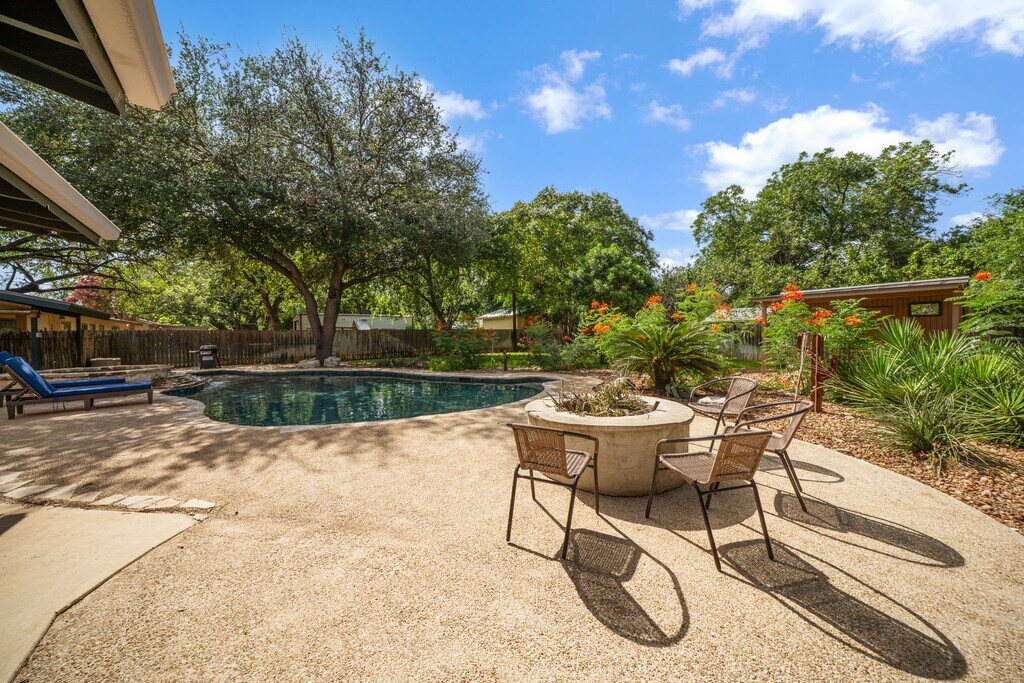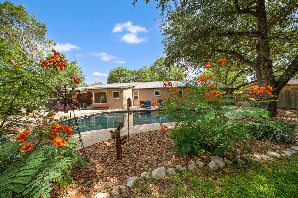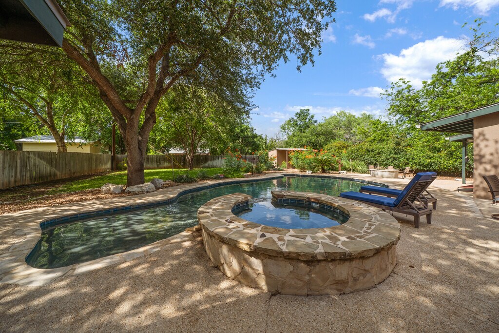 Welcome to a beautifully updated 3-bedroom, 2-bath ranch-style home that effortlessly blends modern upgrades with the timeless charm of its 1960's roots. Step inside and you'll find an inviting layout with an updated kitchen featuring sleek countertops, modern appliances, and stylish finishes with a Basement. The spacious game room is a true showstopper - complete with a pool table, built-in bar, and plenty of space to entertain family and friends. It's the perfect spot for making lasting memories. Step outside to your private backyard retreat. Mature trees, lush landscaping, and a sparkling pool with a hot tub and tranquil waterfall create a resort-style feel right at home. Whether you're hosting a summer BBQ or enjoying a quiet evening soak, this outdoor space is designed to impress. Additional upgrades include a durable metal roof, updated HVAC system, and thoughtful touches throughout that preserve some of the home's original charm. Conveniently located within walking distance of schools and 5 minutes from HEB. Don't miss the opportunity to own this move-in-ready gem that perfectly balances vintage character with modern comfort.