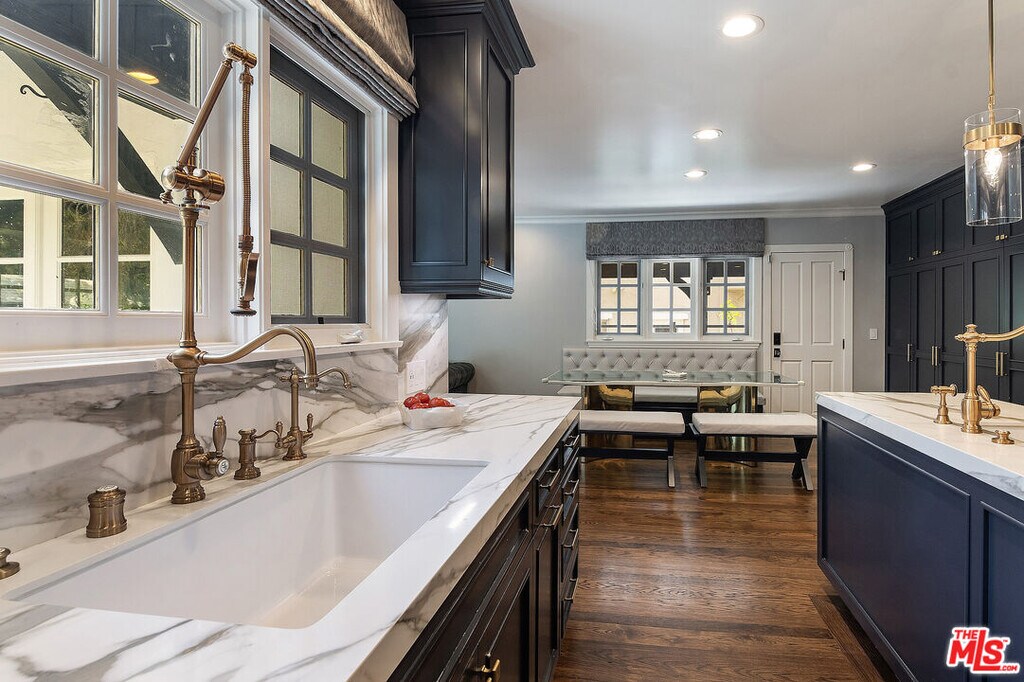 Nestled in the heart of Little Holmby and within the coveted Warner Avenue School District, this beautifully preserved Tudor Revival home perfectly balances timeless elegance with modern comfort. Sunlight pours through leaded-glass windows, illuminating rich hardwood floors, coffered ceilings, and a marble fireplace that anchors the formal living room. A dramatic staircase leads to a serene primary suite with a walk-in closet and a spa-like bath, while two additional bedrooms provide warmth and character. The converted garage offers flexibility as an office, gym, or studio, complemented by custom built-ins, updated lighting, and lush landscaping that enhances privacy and curb appeal. A rare offering in one of L.A.'s most treasured neighborhoods where architectural charm and modern living coexist beautifully. MLS# 25609495