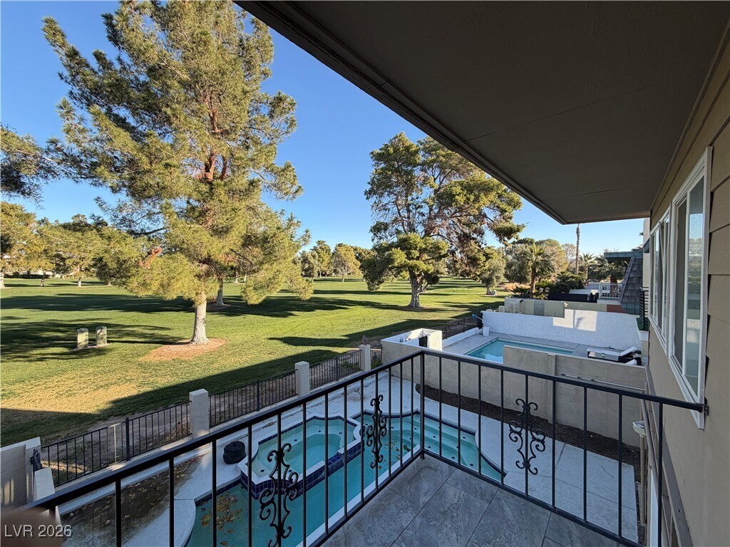 Welcome to guard gated Las Vegas County club. This 3 bedroom home features a pool and spa overlooking the golf course. Inside you have new kitchen cabinets and new granite counter tops. Stainless appliances. Breakfast bar and recessed lighting. New carpet upstairs, new blinds and new plumbing throughout. Terracotta tiles downstairs, wet bar and gas fireplace along with plenty of windows to peer out onto the pool and golf course! One of the secondary rooms have built-in bunk beds. Rent includes pool service, sewer and trash.
