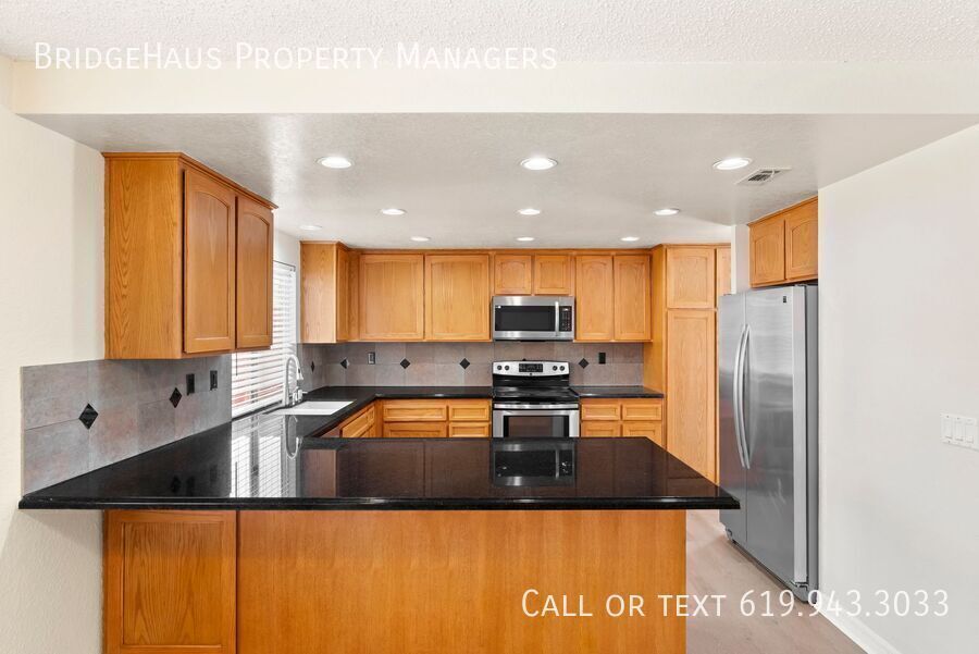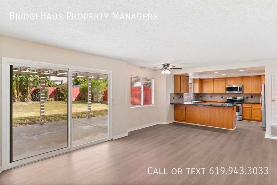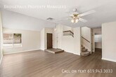 Welcome to this beautifully refreshed 4 bedroom, 2.5 bathroom home offering plenty of space, comfort, and a great layout for everyday living. With new flooring throughout and fresh paint, this home feels clean, bright, and move-in ready. The first floor features formal living and dining rooms, plus a functional kitchen with eat-in space that opens to a cozy family room with a fireplace. You’ll also find one bedroom and a half bathroom downstairs, perfect for a home office, guest room, or added flexibility. Upstairs, the spacious primary suite offers vaulted ceilings, two closets, and a large en suite bathroom with dual vanities. The two additional upstairs bedrooms are both generously sized and filled with natural light, with mirrored closet doors adding to the bright and open feel. Step outside to enjoy the huge backyard with a covered patio, just in time for beautiful San Diego spring weather. Additional features include a large attached 3-car garage and central A/C for year-round comfort. Ideally located with easy access to the 56 and 15 freeways, and close to schools, parks, and shopping. BridgeHaus Property Managers, INC CA DRE #02143972 Brief Summary Of Rental Criteria - Household must make at least 2.5 times the rent in income. - Applicants must have a minimum credit score of 650. - Each person over the age of 18 must complete an application and pay a $42 screening fee. - You must be willing to sign a 12-month lease. - We score each household based on their income, credit score and rental history. What You Might Have A Question About - Monthly Rent: $4,595. - Security Deposit: $4,595. - Three-car garage. - Washer/Dryer included - Central AC/Heat