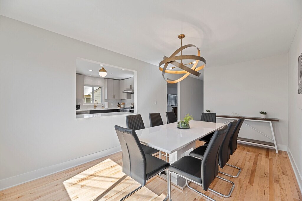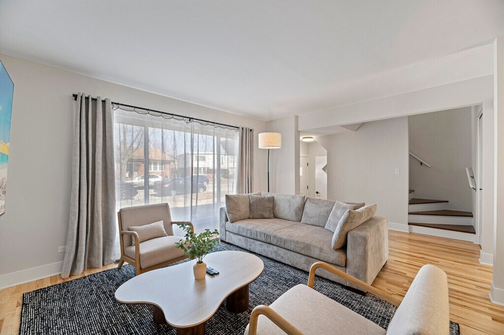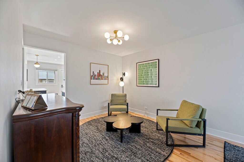 Bring the whole family to this freshly renovated townhome in Des Plaines! This 4-bedroom, 2.5-bathroom home features all hardwood flooring throughout, modern finishes, and decor that make it the perfect getaway. Enjoy a gorgeous kitchen with a spacious dining room, expansive living space, and a finished lower-level recreation room. The back patio is perfect for summer nights. This home offers a great central location with easy access to all that Chicago has to offer. This 4-bedroom, 2.1-bathroom duplex townhome offers expansive living space on the main level with all hardwood flooring throughout. The brand new modern kitchen boasts quartz countertops and stainless appliances, and the large dining room has table space for 8 people. Upstairs, you'll find 4 bedrooms and 2 full bathrooms, including a master bedroom with a king memory foam bed, two secondary bedrooms with queen beds, and a kids' room with two twin beds. The bathrooms are tastefully updated. The lower level dramatically expands the home with a large recreation space featuring a 75-inch TV and a game table for billiards, ping pong, or air hockey. The fenced backyard with a dining table is great for summer nights. This home provides a great central location for all that Chicago has to offer, with easy access to Rosemont and downtown Des Plaines for dining and shopping. There are absolutely no parties or gatherings allowed at this home. If you smoke in the property, you will be charged an additional $500 cleaning fee. If you have more than the allowable occupancy of guests, you will be forced to leave. You must be 25 years of age to book this property and will be required to provide the full names and ages of all guests over 18 years old. This home is located in a quiet residential neighborhood, so please be respectful of neighbors. All excess garbage can be placed in the bins to the right of the driveway. We greatly appreciate your help in this regard. [SI]
