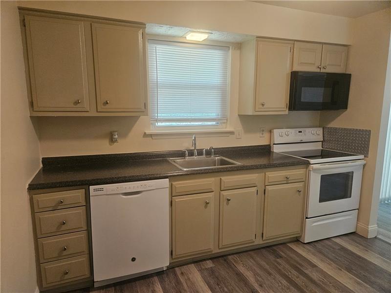 Beautiful well maintained townhouse in Central Valley School District. All new floors recently installed. Enter front door to a spacious living room with plenty of natural light. Living room opens up to the dining room with sliding glass door out to a small patio. The kitchen is fully equipped with electric stove, refrigerator, dishwasher and microwave oven. Second floor offers 2 large bedrooms. Primary bedroom has and en suite bath with 2 closets and the second bedroom has nice sized closet. Basement offers large space for storage or perfect for workout area. Large off street parking lot with 2 parking spaces per unit. NO SMOKING AND NO PETS. There is a $40.00 application fee for credit and background check. Close to I-376, airport, shopping, schools and restaurants.
