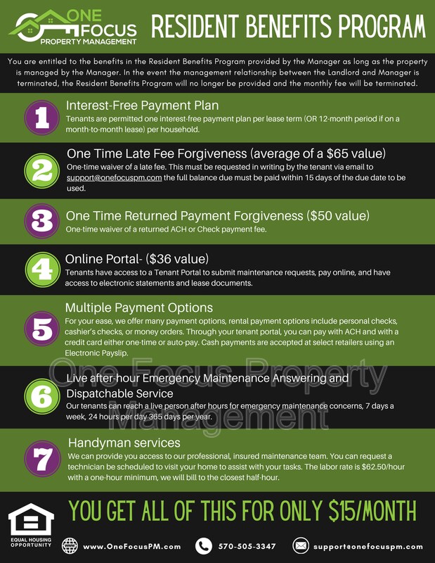 Residents are responsible for natural gas, electricity, water, sewer, trash removal, lawn care, and snow removal. Heat Source: Natural Gas Appliances Included: Fridge, Stove, Dishwasher Laundry: Connections on the second floor. Parking: Small driveway in the front, and street parking available. Minimum Application requirements: Minimum of a 600 credit score AND 2.5 times the rent in verifiable income after debt services Bank account verification. Pet friendly! Up to 2 pets under 50lbs. Pets that exceed the weight limit will not be approved. No aggressive breeds. The monthly pet rent for each pet is based on the FIDO score indicated on your pet screening profile after completion. 5 paws: $35.00/month, 4 paws: $40.00/month, 3 paws: $50.00 per month. CAGED AND TANKED ANIMALS DO NOT REQUIRE A PET APPLICATION BUT WILL BE SUBJECT TO A $15/MONTH FEE. All leases signed with One Focus Property Management® include the following fees that are not included in the cost of the listed rent: A one-time $50 move-in fee. $15/month Resident benefit program fee. $12.95/month master renters insurance policy. Do not submit any application for this home with — or pay any fees or deposits to — any party other than One Focus Property Management®. Amenities: 2 cats/dogs 50lbs weight limit